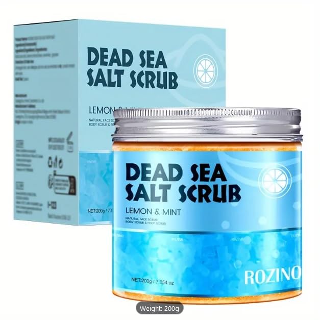VERSATILE USE: Perfect for bath or shower application, this alcohol-free formula helps reveal smoother, more radiant-looking skin. GENEROUS SIZE: Contains 7.054 ounces of product in a convenient jar with secure screw-top lid for easy storage and use. MOISTURIZING FORMULA: Nourishing blend helps keep skin hydrated and soft while exfoliating, suitable for all skin types. EXFOLIATING POWER: Effectively removes dead skin cells and impurities while helping to improve skin texture and appearance. NATURAL INGREDIENTS: Premium Dead Sea salt combined with lemon and mint extracts for a refreshing and invigorating body scrub experience.
