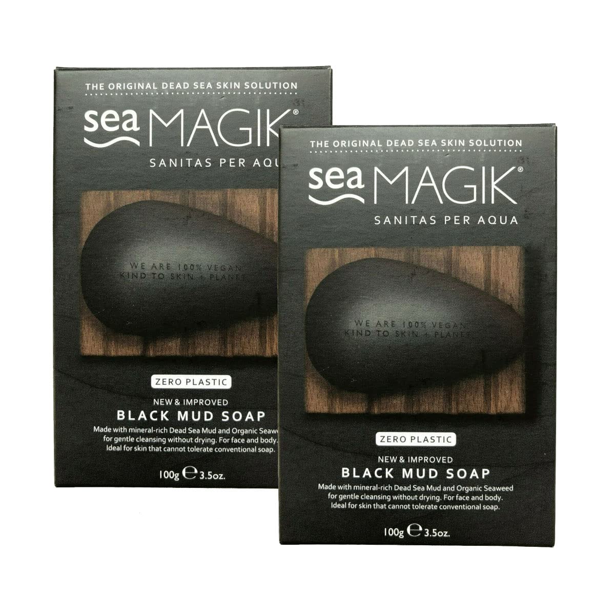 This natural Dead Sea Black Mud Mask Soap is made using an ancient family recipe with olive, palm, coconut, and vegetable oil. It is free of detergents and animal fats and packed with unique Dead Sea minerals. Magik Dead Sea Black Mud Soap is pure and fragrance-free. It removes dead skin cells and impurities and is a more natural alternative to ordinary soaps. It is suitable for use on sensitive skin and skin that may be irritated by regular soaps. It helps balance your skin's pH. Paraben and SLS free. INGREDIENTS Sodium Palm (1), Sodium Palm Kernel (2), Aqua, Glycerin (2), Sodium Chloride (3), Tetrasodium EDTA, Tetrasodium Etitronate, Maris Limus (Dead Sea Mud) . (1) indicates that the ingredient is derived from palm oil, (2) indicates that the ingredient is derived from palm oil, (3) indicates that the ingredient is of mineral origin. indicates purified Dead Sea water containing minerals, including magnesium, potassium, calcium, sodium, bromides, chlorides, and sulfate.No artificial colors. No animal fats. Contains Dead Sea mud.Lot de 2 savons de la mer Morte Spa Magik Noir 100 gDESCRIPTION DU PRODUIT DESCRIPTION DU PRODUIT Le savon naturel du masque de boue noir de la mer Morte est fabriqué en utilisant une recette familiale ancienne avec des olives, des palmiers, des noix de coco et de l'huile végétale. Il est exempt de détergents et de graisse animale et rempli de minéraux uniques de la mer Morte. Le savon à la boue noire Magik de la mer Morte est pur et sans parfum. Il élimine les cellules mortes de la peau et les impuretés de la peau et est une alternative plus naturelle aux savons ordinaires. Il est adapté pour une utilisation sur les peaux sensibles et les peaux qui peuvent être irritées par les savons ordinaires. Il aide à équilibrer le pH de votre peau. Sans paraben ni SLS. INGRÉDIENTS Palme de sodium (1), noyau de palme de sodium (2), Aqua, Glycérine (2), chlorure de sodium (3), EDTA Tetrasodium, Tetrasodium Etitronate, Maris Limus (boue de la mer Morte) . (1) indique que l'ingrédient est issu de l'huile de palme, (2) indique que l'ingrédient est issu de l'huile de palme, (3) indique que l'ingrédient est d'origine minérale. indique l'eau purifiée contenant des minéraux de la mer Morte, y compris le magnésium, le potassium, le calcium, le sodium comme les bromides, les chlorures et le sulfate.Sans colorant artificiel. Pas de graisses animales. Contient de la boue de la mer morte.