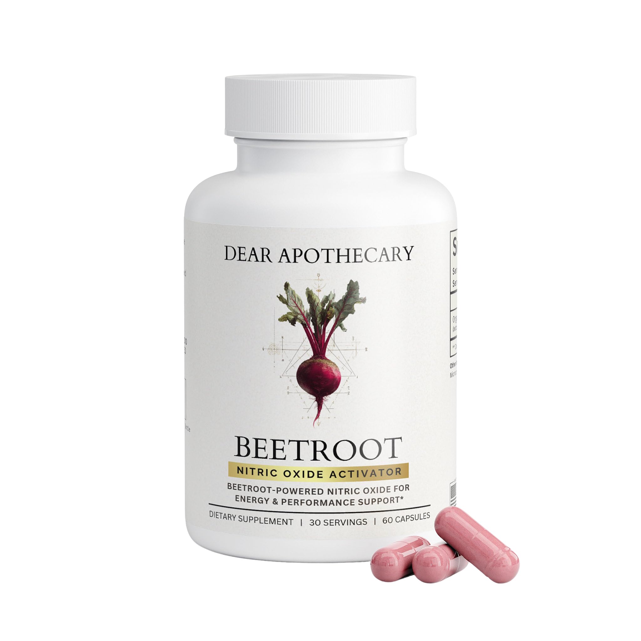 Dear Apothecary Organic Beetroot Capsules | 1300mg Beet Root Powder | Nitric Oxide Precursor | 60 Vegetarian Capsules | Non-GMO Gluten Free Vegan