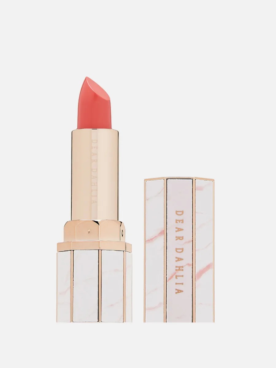 Dear Dahlia lipstick adapts to your natural lip color and creates a perfect tone based on your skin's pH and moisture levels. It delivers not only unique color and a subtle shine, but also optimal hydration. Its lightweight texture creates a weightless, comfortable coverage and allows for customizable color intensity and shine. It contains antioxidant-rich dahlia extract and shea butter for hydration.