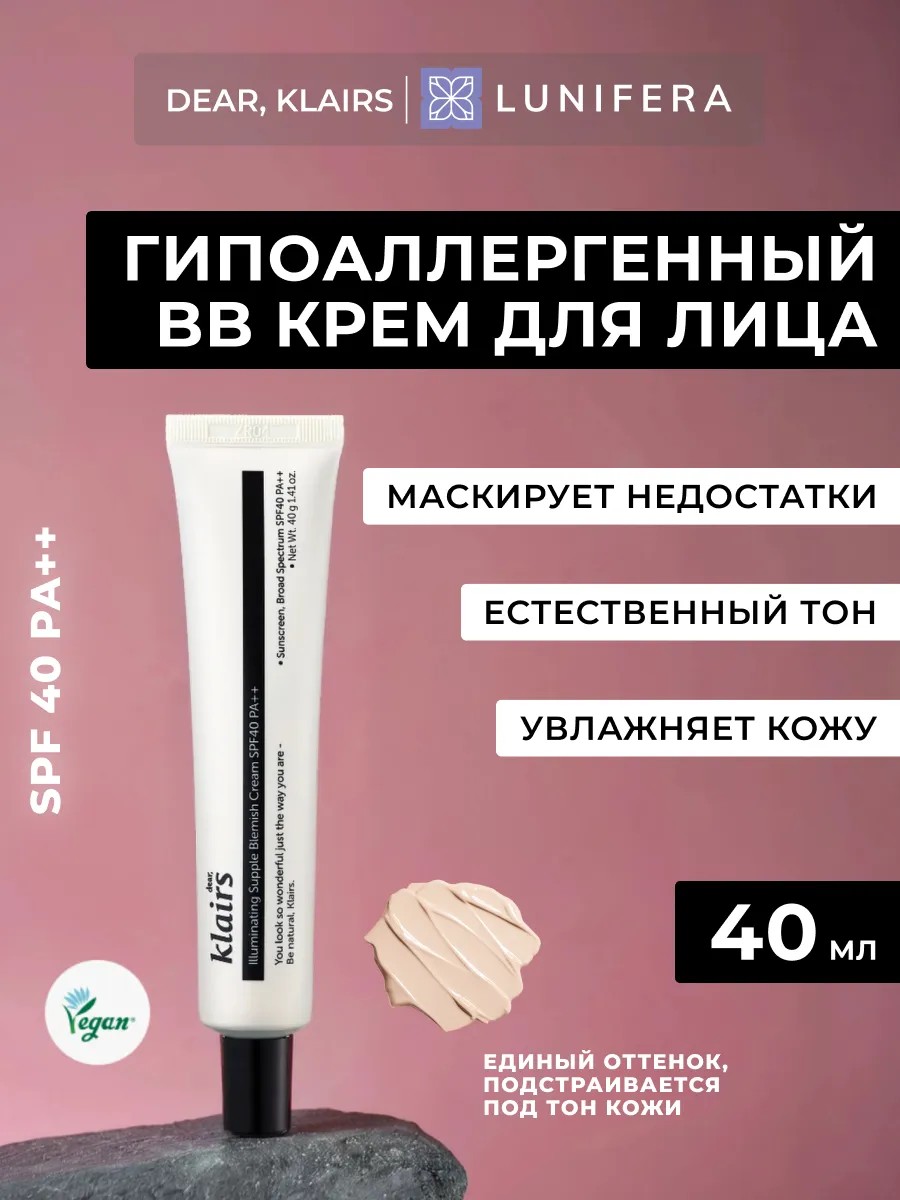 ББ крем для лица Корея Klairs Illuminating Supple Blemish Cream SPF40 PA++ - bb cream сохраняя естественный тон, он сделает вашу кожу еще лучше. Питательные и увлажняющие ингредиенты в гипоаллергенной формуле тонального крема делают кожу увлажненной и свежей, при этом скрывает пятна, неровный тон кожи и поры. вв крем для лица,bb крем тональный для лица с spf,бб крем для лица,биби крем,декоративная косметика,bb крем матирующий,тоналка bb крем для жирной кожи, вв