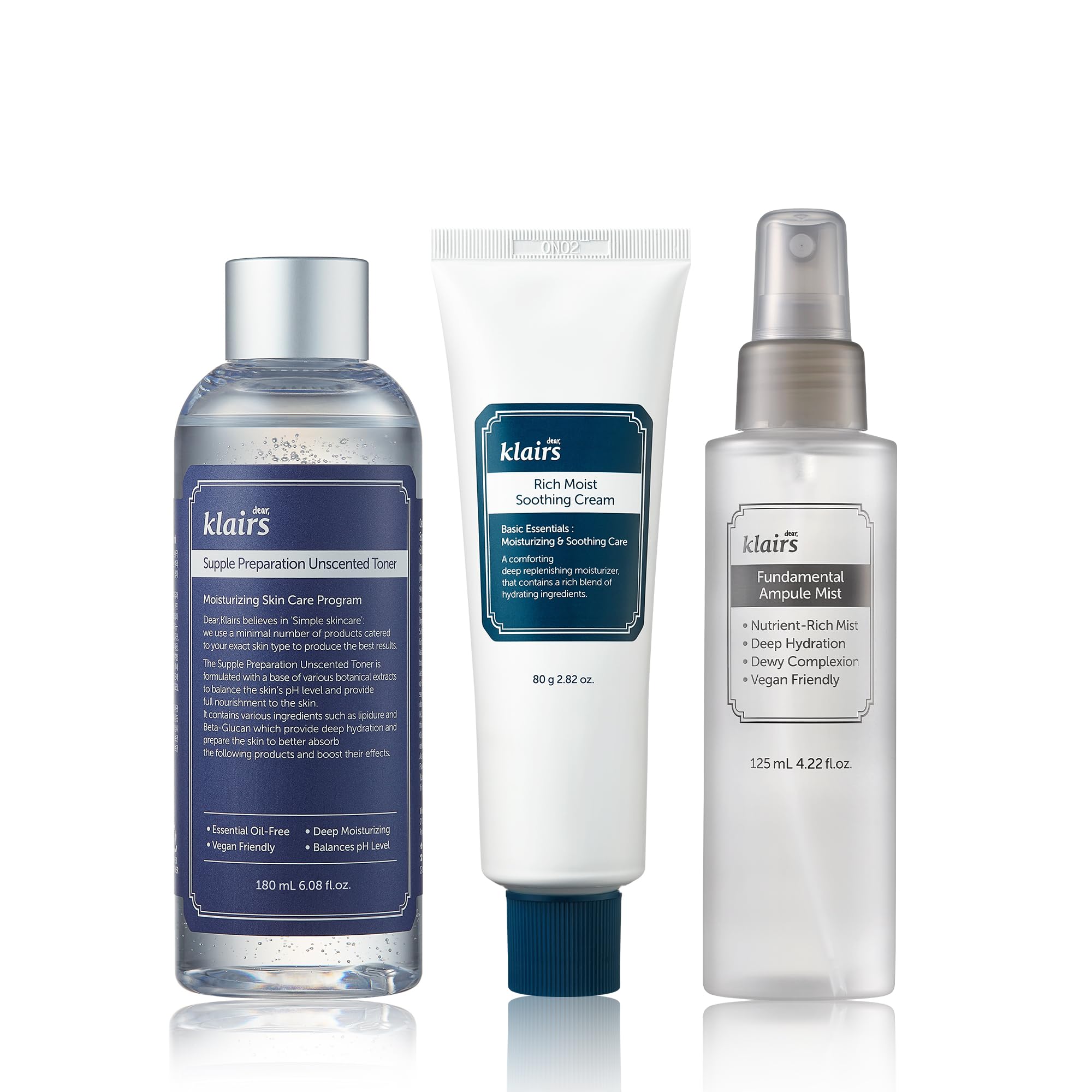 DearKlairs Klairs All Day Moisturizing Kit 3pc toner cream mist
