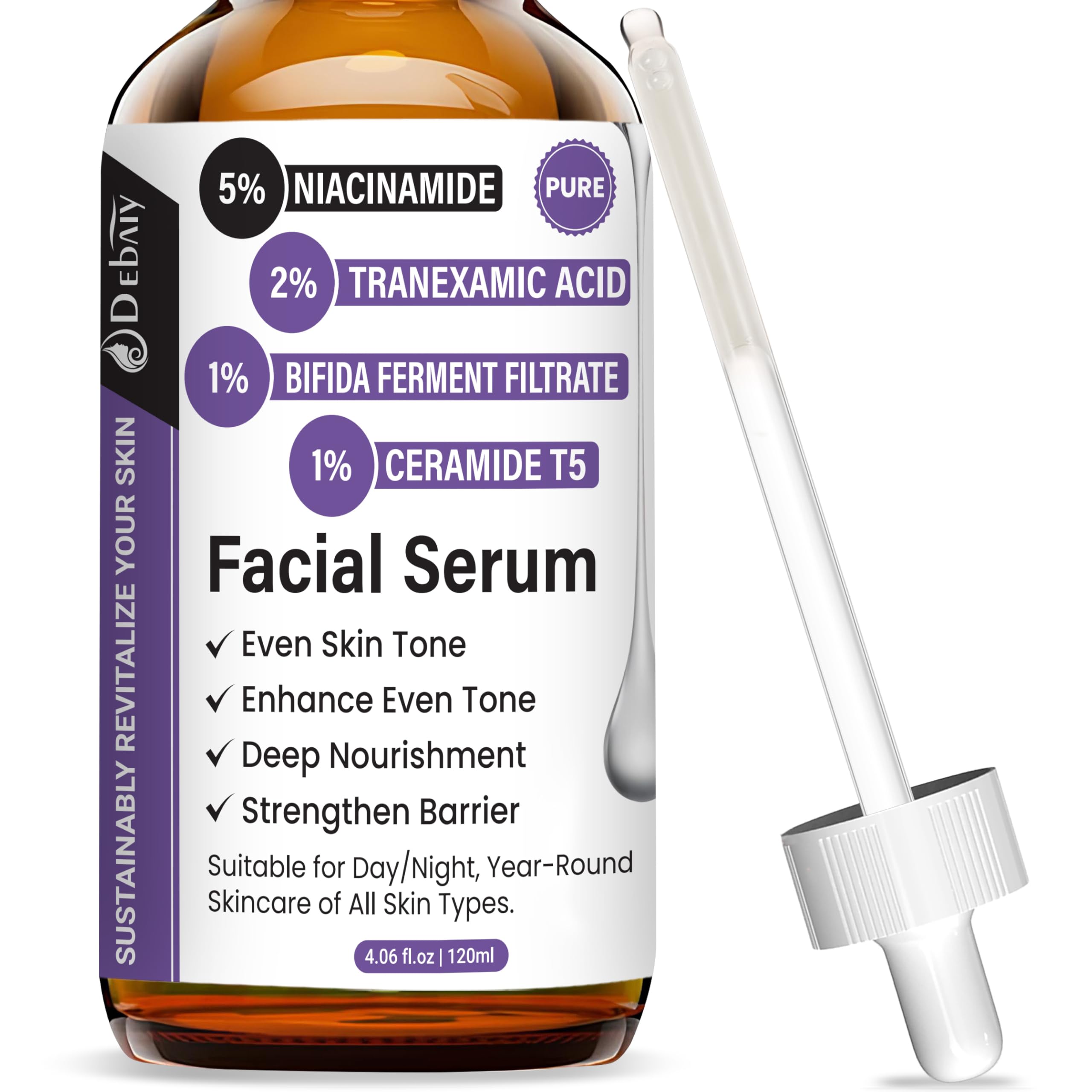 DEBAIY 5% Niacinamide Facial Serum with Tranexamic Acid Enhance Even Tone & Strengthen Skin Barrier (4.06fl.oz/120ml)