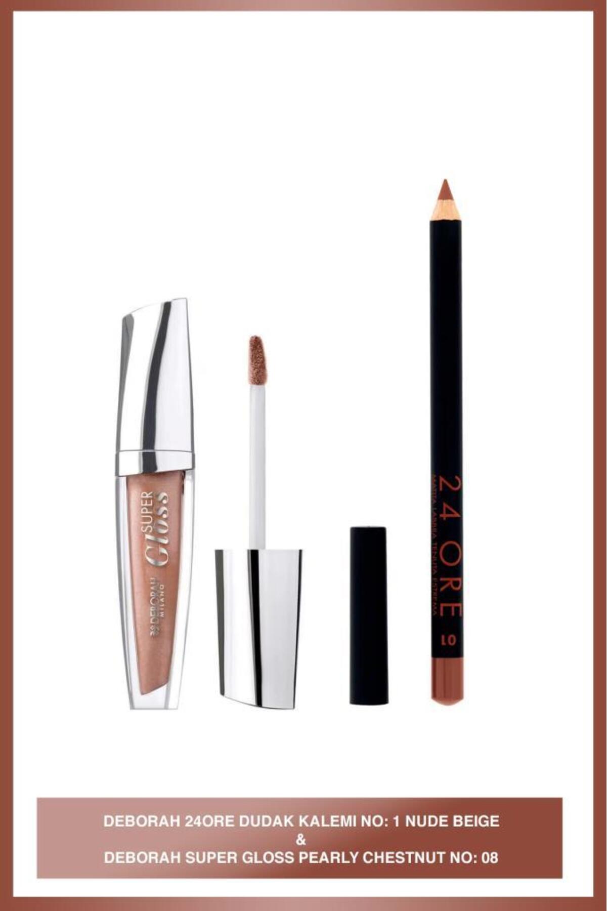 Deborah 08 Super Gloss + Deborah 24 Ore Lip Pencil No: 1 Nude Beige