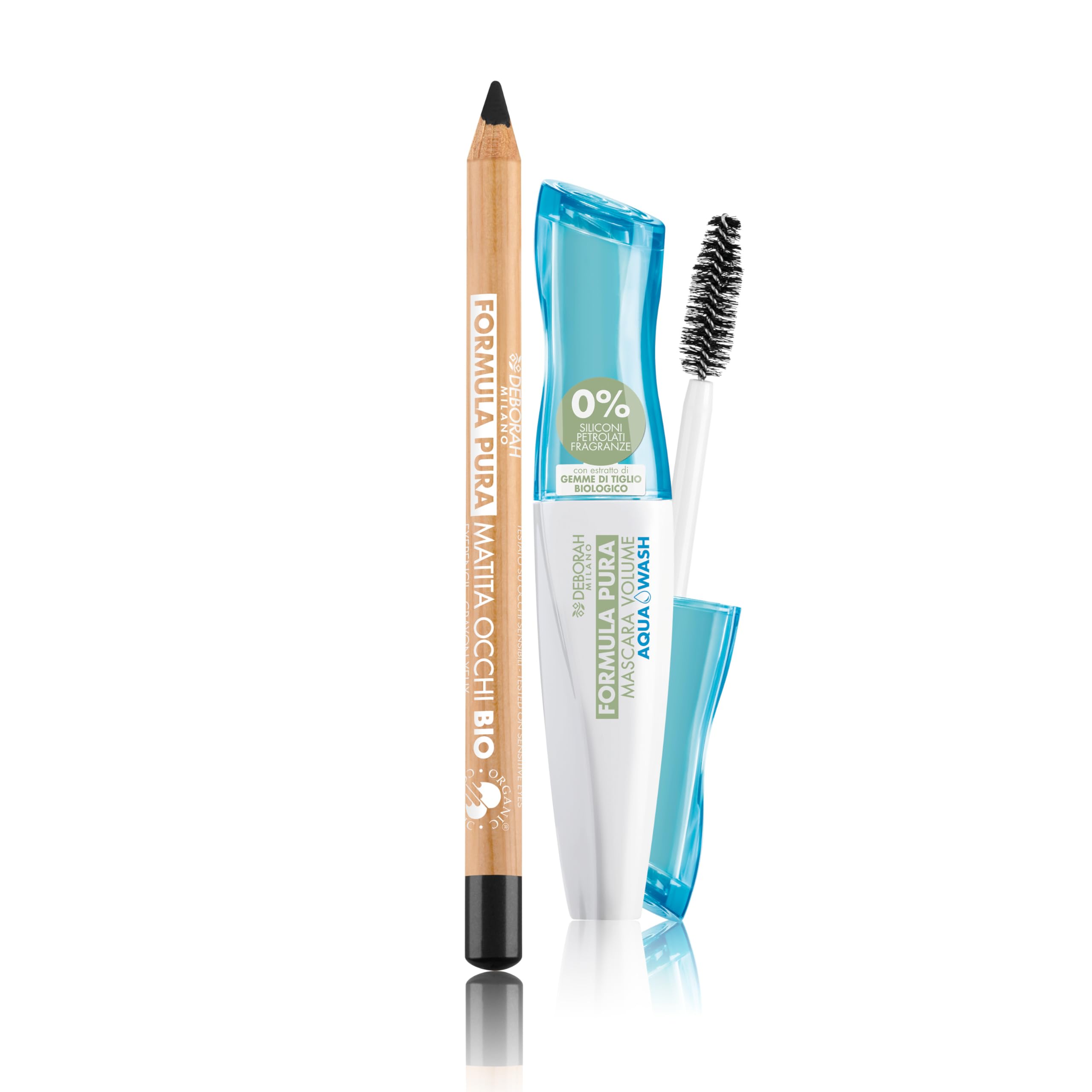 Deborah Milano - Set de maquillage pour les yeux bio formule pure, noir n 1 et mascara formule pure Aqua Wash, déchirement rapide, noir, 12 ml
