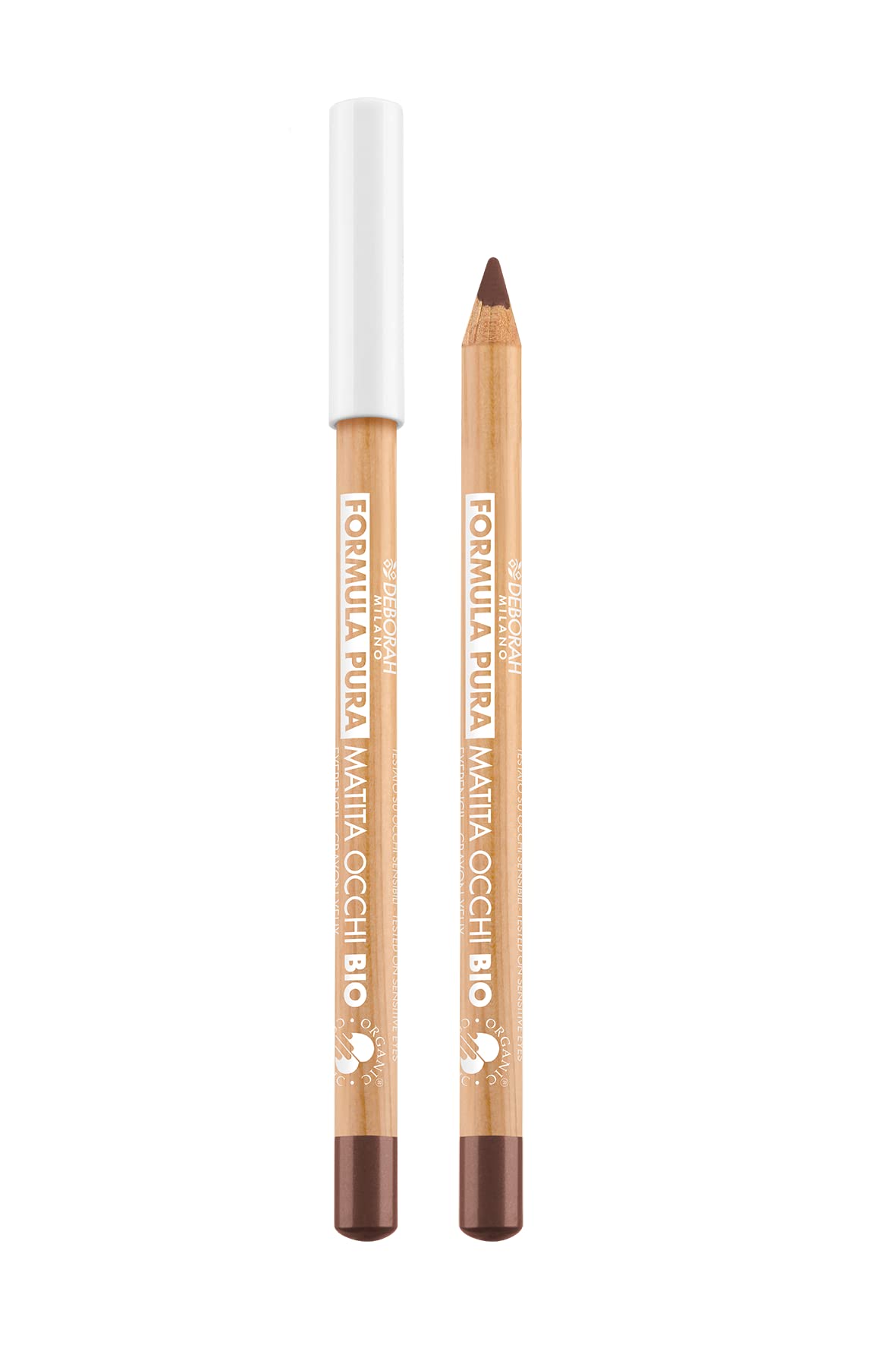 Description: The Formula Pure line of pencils features organic coconut oil as a key ingredient, resulting in richer, more comfortable textures for a flawless finish. The packaging is made of PEFC-certified wood, with a natural wood-colored body for eye and lip pencils and white for kajal. All new Formula Pure pencils have a white cap made of 55 bio-based plastic, and the opposite end is colored in the corresponding shade for easy color identification. Directions: The soft lead allows for comfortable and precise application, adhering to the inner rim of the eye without smudging. HOW TO USE The soft lead allows for comfortable and precise application, adhering to the inner rim of the eye without smudging.Formulated without silicone, perfumes, and petrolatum, it is ophthalmologically tested and suitable for sensitive eyes, contact lens wearers, and vegans. The new formula, made from 100 naturally derived ingredients, many of which are certified organic, is even richer and more comfortable thanks to organic coconut oil, and guarantees a powerful release of pigments for full, intense, and highly blendable color. It has a creamy, easily blendable texture, ensuring a precise and ultra-smooth application.Deborah Milano - Crayon bio formule pure - Couleur : marron n 2DESCRIPTION DU PRODUIT DESCRIPTION DU PRODUIT Description : les crayons de la ligne Formula Pure ont comme ingrédient clé l'huile de coco biologique, ce qui rend les textures encore plus riches et confortables, pour un effet impeccable. Le pack est fabriqué en bois certifié PEFC avec le corps de couleur bois naturel pour crayons yeux et lèvres et blanc pour KAJAL. Tous les nouveaux crayons Formula Pure ont un capuchon blanc en plastique à 55 bio-based et l'extrémité opposée colorée dans la nuance de la texture, pour identifier immédiatement la couleur souhaitée. Indications : la mine douce permet une application confortable et précise, en adhérant à la rime intérieure de l'œil sans bavures. MODE D'EMPLOI La mine douce permet une application confortable et précise, en adhérant à la rime intérieure de l'œil sans bavure.Formulée sans silicone, parfums et pétrolates, elle est testée ophtalmologiquement et est indiquée pour les yeux sensibles, porteurs de lentilles de contact et végétaliens. La nouvelle formule fabriquée à partir de 100 d'ingrédients d'origine naturelle dont de nombreux certificats biologiques sont encore plus riches et confortables grâce à l'huile de coco biologique, et garantit une libération marquée des pigments pour une couleur pleine, intense et hautement estompable. Il a une texture crémeuse et facilement estompée, ce qui assure un trait précis et ultra-fluide.