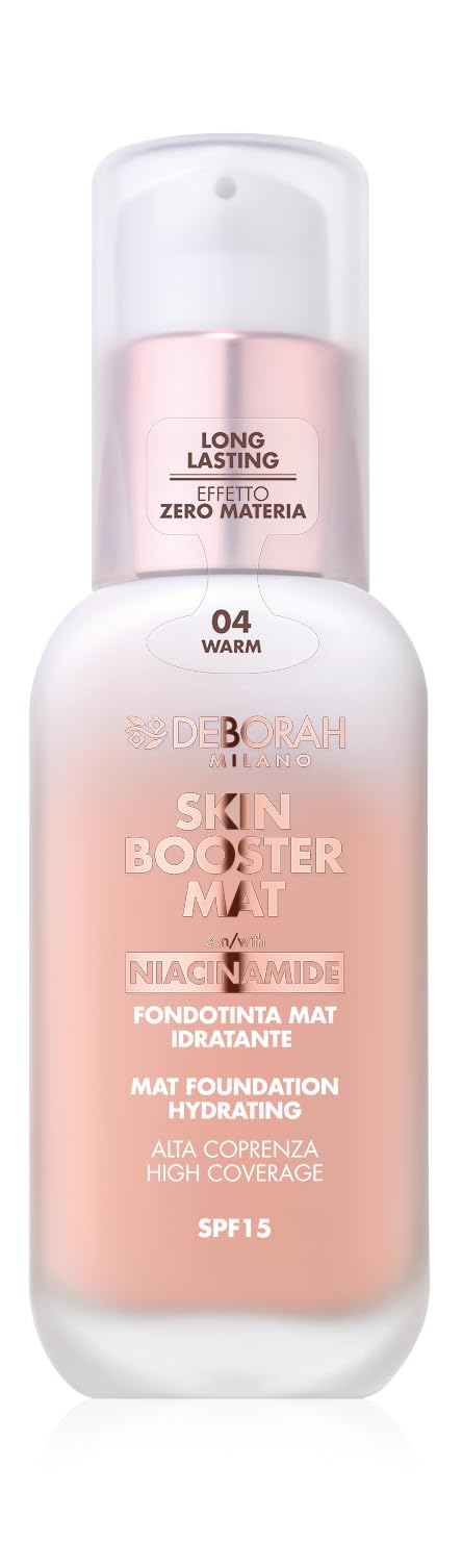 Deborah Milano has been synonymous with Italian beauty excellence for over 50 years. Creativity, beauty, passion, and meticulous attention to detail are its core values. This ultra-lightweight, mattifying fluid foundation instantly enhances the complexion by minimizing shine and imperfections. Its texture is light, velvety, and incredibly comfortable: an imperceptible, even, opaque veil for a weightless finish. Quantity: 30 ml Color: N.04 Warm SAFETY WARNING For external use only. Avoid contact with eyes.Contents: 1 x Skin Booster MAT Serum Foundation. Quantity: 30 ml. Color: N.4 Warm. Application: Using the dropper, dispense a few drops of foundation onto the back of your hand, warm the product with your fingertips using light, circular motions, and then smooth the product onto your face with gentle, outward strokes. Effect: Ultra-light and mattifying, this foundation instantly enhances the complexion by reducing shine and imperfections. Formula: Enriched with vitamin C and niacinamide, this formula helps the skin strengthen its defenses and fight free radicals for antioxidant and brightening benefits. Product: This liquid serum foundation, with a matte finish, boosts energy and radiance, addressing signs of fatigue by evening out skin tone and providing a fresh, natural "second skin" effect.Deborah Milano - Skin Booster MAT - Fond de teint en sérum SPF 15, N.4 Warm, énergisant et éclaircissant - Vitamine C - Effet naturel - Uniforme le teint - 30 mlDESCRIPTION DU PRODUIT DESCRIPTION DU PRODUIT Deborah Milano est une excellence de la beauté fabriquée en Italie depuis plus de 50 ans. Créativité, beauté, passion et soin du détail sont les valeurs porteuses. Un fond de teint fluide ultra-léger et matifiant qui sublime instantanément le teint en atténuant la brillance et les imperfections. Sa texture est légère, veloutée et super confortable : un voile opaque imperceptible et homogène pour un effet zéro matière. Quantité : 30 ml Couleur : N.04 Warm AVERTISSEMENT DE SÉCURITÉ Usage extérieur uniquement. Évitez tout contact avec les yeux.Contenu : 1 x Skin Booster MAT Fond de teint en sérum. Quantité : 30 ml Couleur : N.4 Warm. Application : avec le dropper compte-gouttes, relâchez quelques gouttes de fond de teint sur le dos de la main, réchauffez le produit avec les doigts en faisant de légers mouvements rotatifs, étaler le produit sur le visage avec des mouvements doux du centre vers l'extérieur. Effet : ultra-léger et matifiant qui sublime instantanément le teint en atténuant la brillance et les imperfections. Formule : formulation enrichie en vitamine C en pourcentage d'efficacité et niacinamide qui aident la peau à renforcer ses défenses et à lutter contre les radicaux libres pour une action antioxydante et éclairante. Produit : fond de teint liquide en sérum, au fini mat, booster d'énergie et luminosité pour la peau, qui agit sur les signes de fatigue en uniformant le teint et en donnant du ton, de la fraîcheur et un effet naturel « second skin ».
