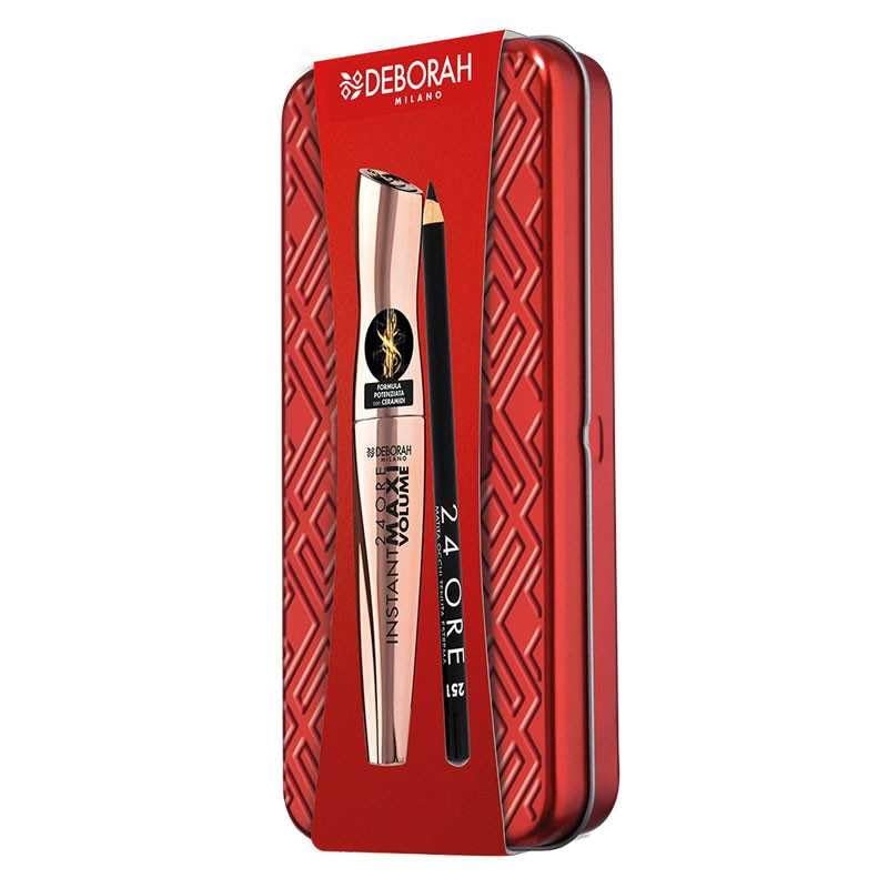 Deborah Milano – Gift set for women, tinplate eye makeup, with 24-hour maxi volume instant mascara with ceramic 251 black.