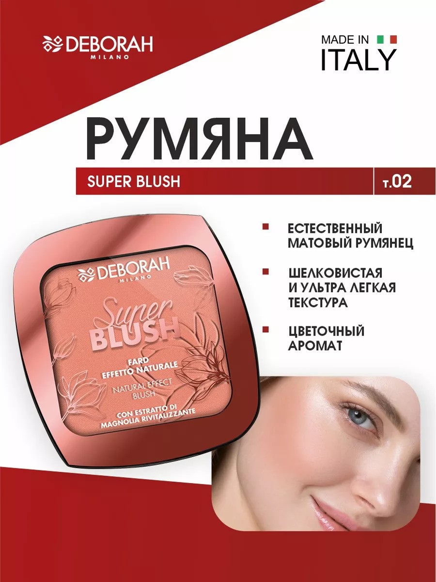 Deborah Milano Румяна для лица Super Blush, тон 02 Кораллово-розовый