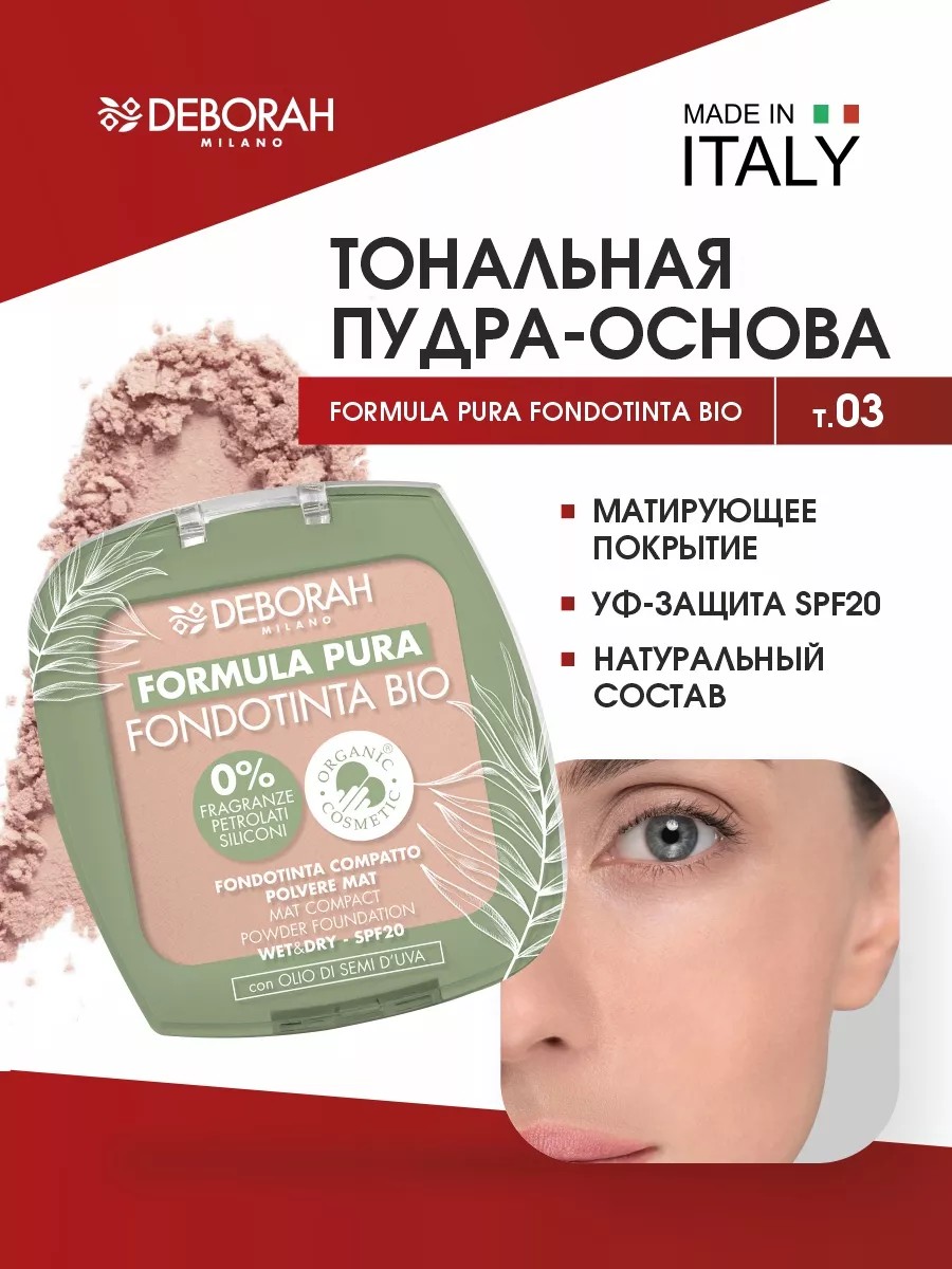 Deborah Milano Тональная пудра основа Formula Pura Fondotinta Bio, тон 03 бежевый.