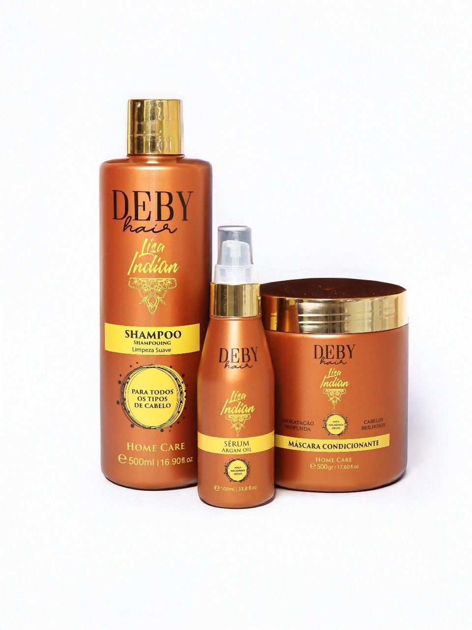 : Discover the DEBY Hair Liza Indian range, a luxurious collection of hair care products designed for all hair types. This complete set includes a 500ml gentle shampoo for optimal cleansing, a 100ml argan oil serum to nourish and enhance your hair, and a 500ml conditioning mask for deep hydration. The formula, enriched with argan oil, brings shine and softness to your hair. The products work together to transform your hair, leaving it silkier and easier to style. The elegant packaging in copper and gold tones reflects the premium quality of this hair care range. Ideal for establishing a complete at-home hair care routine, this trio of products offers you a professional salon experience in the comfort of your own bathroom. Ingredients Amla P.when('A').execute(function(A) { A.on('a:expander:toggle_description:toggle:collapse', function(data) { window.scroll(0, data.expander. expander[0].offsetTop-100) }) }) Directions To use this DEBY Hair Liza Indian hair care kit, follow these steps: 1. Shampoo: Apply a generous amount to wet hair, gently massage to lather, then rinse thoroughly. 2. Argan Oil Serum: Apply a small amount to dry or damp hair, distribute evenly, and leave on. 3. Conditioning Mask: Apply a generous amount to wet hair, leave on for a few minutes, then rinse thoroughly. Safety Warning Extreme Use See morePROFESSIONAL CARE: High-performance product range for salon-quality results at home. SPECIALIZED SERUM: 100ml argan oil-enriched formula for targeted care and daily protection. INTENSIVE TREATMENT: 500ml nourishing conditioning mask for deep hydration and shiny hair. VERSATILE FORMULA: Gentle shampoo suitable for all hair types for deep cleansing and optimal hydration. COMPLETE SET: Hair care kit including a 500ml shampoo, a 100ml argan oil serum, and a 500ml conditioning mask.Description du produit Découvrez la gamme DEBY Hair Liza Indian, une collection luxueuse de soins capillaires conçue pour tous les types de cheveux. Ce coffret complet comprend un shampooing doux de 500ml pour une propreté optimale, un sérum à l'huile d'argan de 100ml pour nourrir et sublimer vos cheveux, et un masque conditionneur de 500ml pour une hydratation profonde. La formule enrichie en huile d'argan apporte brillance et douceur à votre chevelure. Les produits travaillent en synergie pour transformer vos cheveux, les rendant plus soyeux et faciles à coiffer. Le packaging élégant en tons cuivrés et dorés reflète la qualité premium de cette gamme de soins. Idéal pour établir une routine capillaire complète à domicile, ce trio de produits vous offre une expérience de salon professionnelle dans le confort de votre salle de bain. Ingrédients Amla P.when('A').execute(function(A) { A.on('a:expander:toggle_description:toggle:collapse', function(data) { window.scroll(0, data.expander. expander[0].offsetTop-100) }) }) Mode d'emploi Pour utiliser ce kit de soins capillaires DEBY Hair Liza Indian, suivez ces étapes : 1. Shampooing : Appliquez une quantité généreuse sur vos cheveux mouillés, massez doucement pour faire mousser, puis rincez soigneusement. 2. Sérum à l'huile d'argan : Appliquez une petite quantité sur vos cheveux secs ou humides, répartissez uniformément et laissez agir. 3. Masque conditionneur : Appliquez une quantité généreuse sur vos cheveux mouillés, laissez poser pendant quelques minutes, puis rincez soigneusement. Avertissement De Sûreté Usage extrême Voir plusSOINS PROFESSIONNELS: Gamme de produits haute performance pour des résultats dignes d'un salon à domicile. SÉRUM SPÉCIALISÉ: Formule enrichie à l'huile d'argan de 100ml pour un soin ciblé et une protection quotidienne. SOIN INTENSIF: Masque conditionneur nourrissant de 500ml pour une hydratation profonde et des cheveux brillants. FORMULE POLYVALENTE: Shampooing doux adapté à tous les types de cheveux pour un nettoyage en profondeur et une hydratation optimale. ENSEMBLE COMPLET: Kit de soins capillaires comprenant un shampooing 500ml, un sérum à l'huile d'argan 100ml et un masque conditionneur 500ml.DEBY Hair Ligne Indian, Ensemble de Soins Capillaires, Shampooing 500ml, Sérum à l'Huile d'Argan 100ml, Masque Conditionneur 500ml