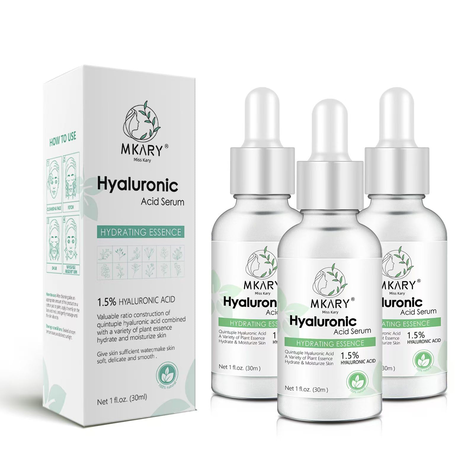 ANTI-AGING BENEFITS: Regular use helps improve skin elasticity, minimize wrinkles, and maintain a youthful, glowing complexion. NATURAL INGREDIENTS: Enriched with plant essence and botanical extracts to enhance the skin's natural radiance and texture. DEEP MOISTURIZING: Advanced hydrating formula helps reduce the appearance of fine lines while plumping and moisturizing the skin. POWERFUL FORMULA: Features 1.5 quintuple hyaluronic acid complex that penetrates different skin layers for maximum hydration. TRIPLE PACK VALUE: Contains three bottles of premium hyaluronic acid serum, each bottle containing 1 fl oz (30ml) of concentrated formula.