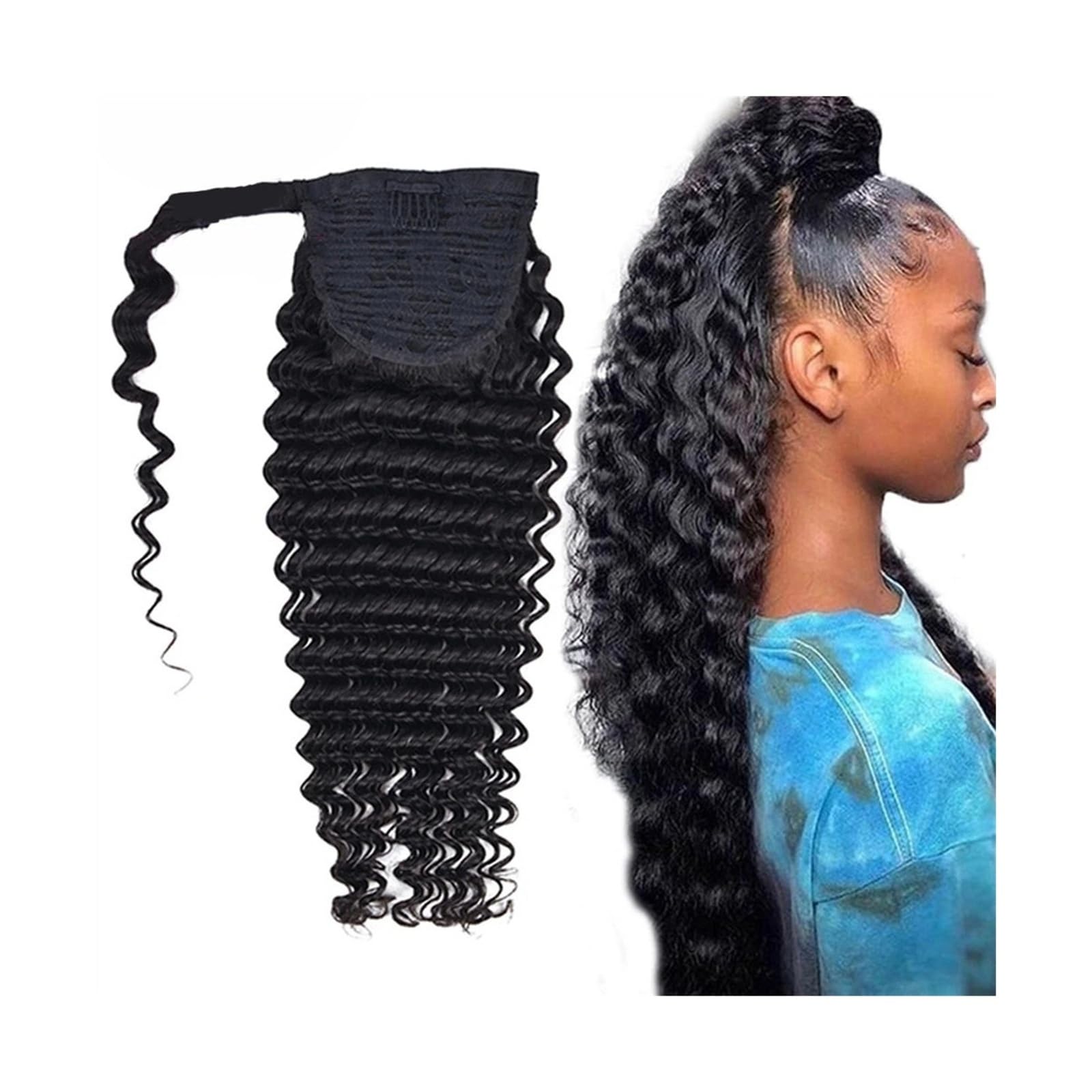 The ponytail hair extensions are natural and realistic, stylish and beautiful, and the wrap around hair makes the ponytail look more natural. Deep Wave Human Hair Ponytail Extension for Black Women, Wrap Around Ponytail with Magic Paste Clip In Wave Ponytail Hair Extensions Human Hair Pieces Product Name: Deep Wave Human Hair Ponytail Extension Hair Material: Brazilian Human Hair Hair Sytle: Deep Wave Length: 10-24 Inch Color: Natural Black Occasions: Suitable for Everyday Wear, Cosplay, Dating, Parties and Other Occasions. Packing list: 1Pcs * Deep Wave Wrap Around Ponytail Extension Note: 1. Please check the size and color before purchg. 2. Does not include items other than those shown in the product photo. 3. Please note that due to the different monitors, slight chromatic aberration may occur, please understand. 4. The above data is for reference only, the size is manual measurement, each variable may be different, please refer to the actual product, thank you.5.?Warm Tips?:For All Human Hair Products, Minimum Shedding And Tangling Is Normal, Please Take Care Of Washing And Maintenance. And You Could Try Some Hair Spray To Keep The Good And Lasting Hair Style, And You Could Also Apply Some Hair Oil To Maintain Hair Quality, And Prevent Hair Dry. 4.?Suitable for Different Occasions?: Sexy looks, suitable for all fashion/glamour/elegant many occasions such as party, date, shopping, dinner, banquet, cocktail, etc. 3.?Ponytail Extension For Black Women ?:Our Human Hair Ponytail Can Be Washed, Conditioned, Dyed, Cut, Twisted Out, Straightened, Curled And Styled. 2.?Wrap Around Ponytail Human Hair?:This Wrap Around Ponytail Extension Is Easy To Wear, And The Magic Paste Can Hold The Ponytail Well, 1 Clip On The Hairnet,Easy To Get a Long Thick Ponytail Like Magic.Super Easy To Wear And Stay On Securely. Just Wrap/Tie It Around Your Own Ponytail And You Will Get a Long Thick Pony Tail Magically. 1.?Human Hair Ponytail Extension ?:Made With 100% Virgin Remy Human Hair Cut Directly From One Donor. 100% Real Human Hair, No Shedding And Tangle Free, Healthy And Clean, Bouncy, Soft And Comfortable. The ponytail extension is very popular. It is suited for many kinds of occasions, such as daily use, dating, meeting, graduation, wedding, party, and many other occasions.