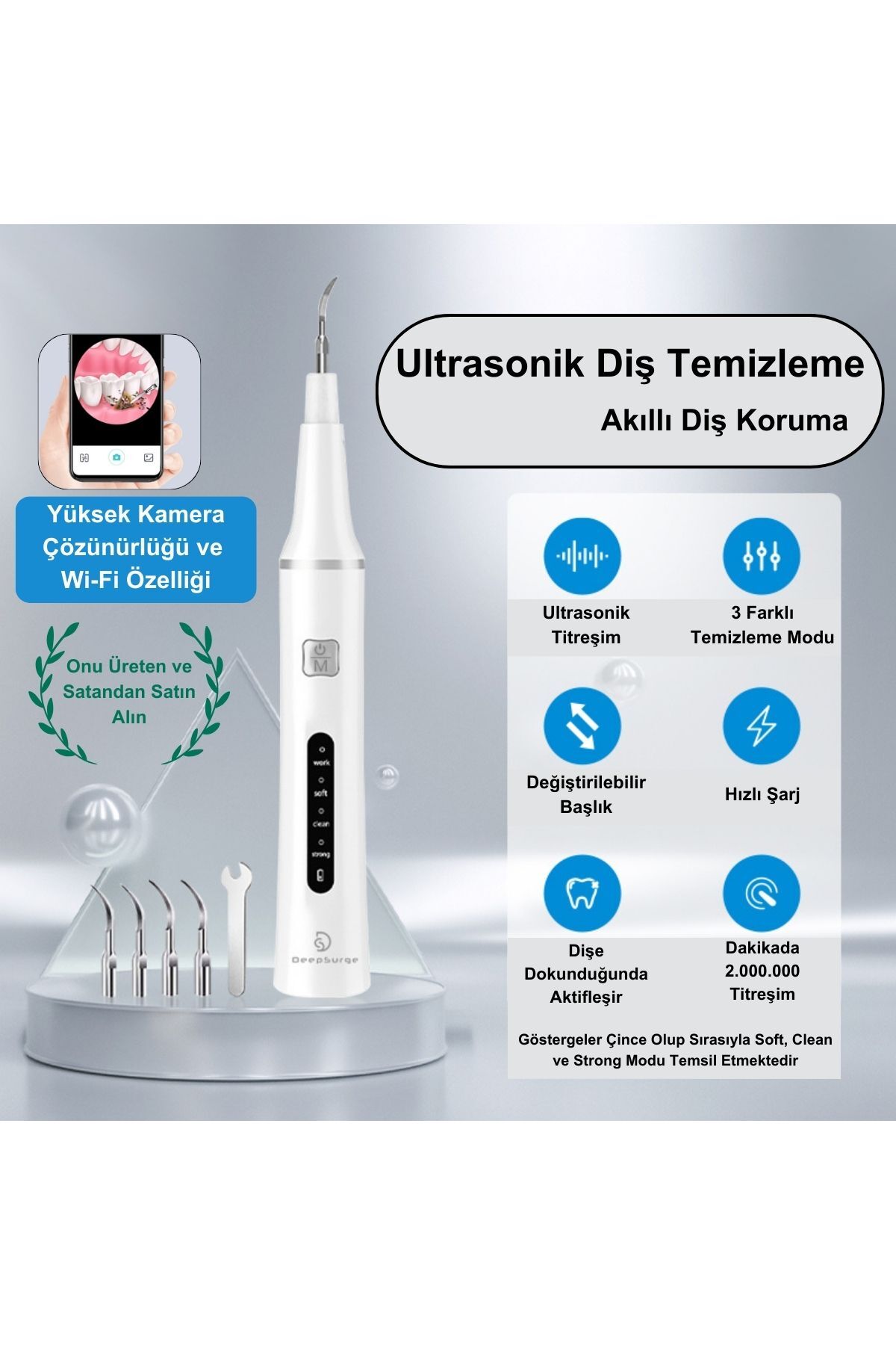 Deepsurge sarjli dis tasi temizleyici birçok agiz sagligi problemlerinizi gidermek için üretilmistir: