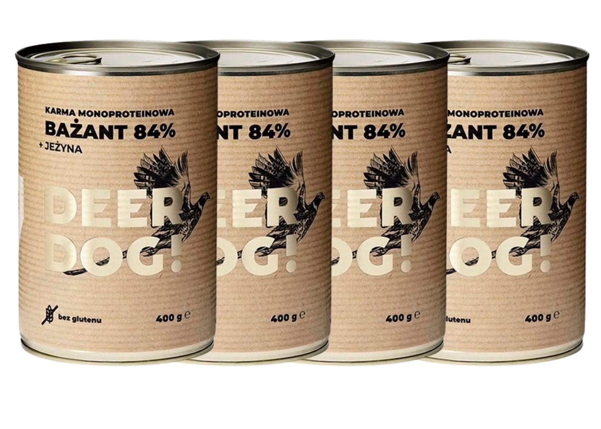 INGREDIENTS Composition of DEER DOG! Fasan 84 blackberry wet food: pheasant meat - 84 , carrot - 10 , buckwheat groats - 2 , dried plum - 2 , amaranth - 1 , dried blackberry - 1 .Improves digestion: Buckwheat groats - gluten-free, promotes intestinal activity and is a source of vitamins and minerals dried plum - regulates the digestive system dried blackberry - regulates digestive processes. No fillers, dyes or preservatives, grain-free and gluten-free, contains selected plant-based additives - provides carbohydrates. Completely - fully covers your dog's nutritional needs - Simple and natural composition - only a few carefully selected ingredients, high meat content - Consists of 84 pheasant meat, no added bone meal, monoprotein - no addition of other types of meat, meat that has undergone a short heat treatment - which makes it easy to digest, rich in nutrients and has the right structure. The main characteristics of DEER DOG Fasan 84 Blackberry wet food. INGRÉDIENTS Composition de la nourriture humide DEER DOG! Fasan 84 mûre : viande de faisan - 84 , carotte - 10 , gruau de sarr - 2 , prune séchée - 2 , amarante - 1 , mûre séchée - 1 .Améliore la digestion : gruau de sarr - sans gluten, favorise l'activité intestinale et est une source de vitamines et de minéraux prune séchée - régule le système digestif mûre séchée - régule les processus digestifs. Sans charges, colorants ni conservateurs, sans céréales et sans gluten, contient des additifs végétaux sélectionnés – fournit des glucides. Complètement – couvre entièrement les besoins nutritionnels de votre chien – Composition simple et naturelle – seulement quelques ingrédients soigneusement sélectionnés, haute teneur en viande – Composé à 84 de viande de faisan, sans ajout de farine d'os, monoprotéine – pas d'addition d'autres types de viande, viande qui a subi un court traitement thermique – ce qui la rend facile à digérer, riche en nutriments et a la bonne structure. Les principales caractéristiques de la nourriture humide DEER DOG Fasan 84 mûre.