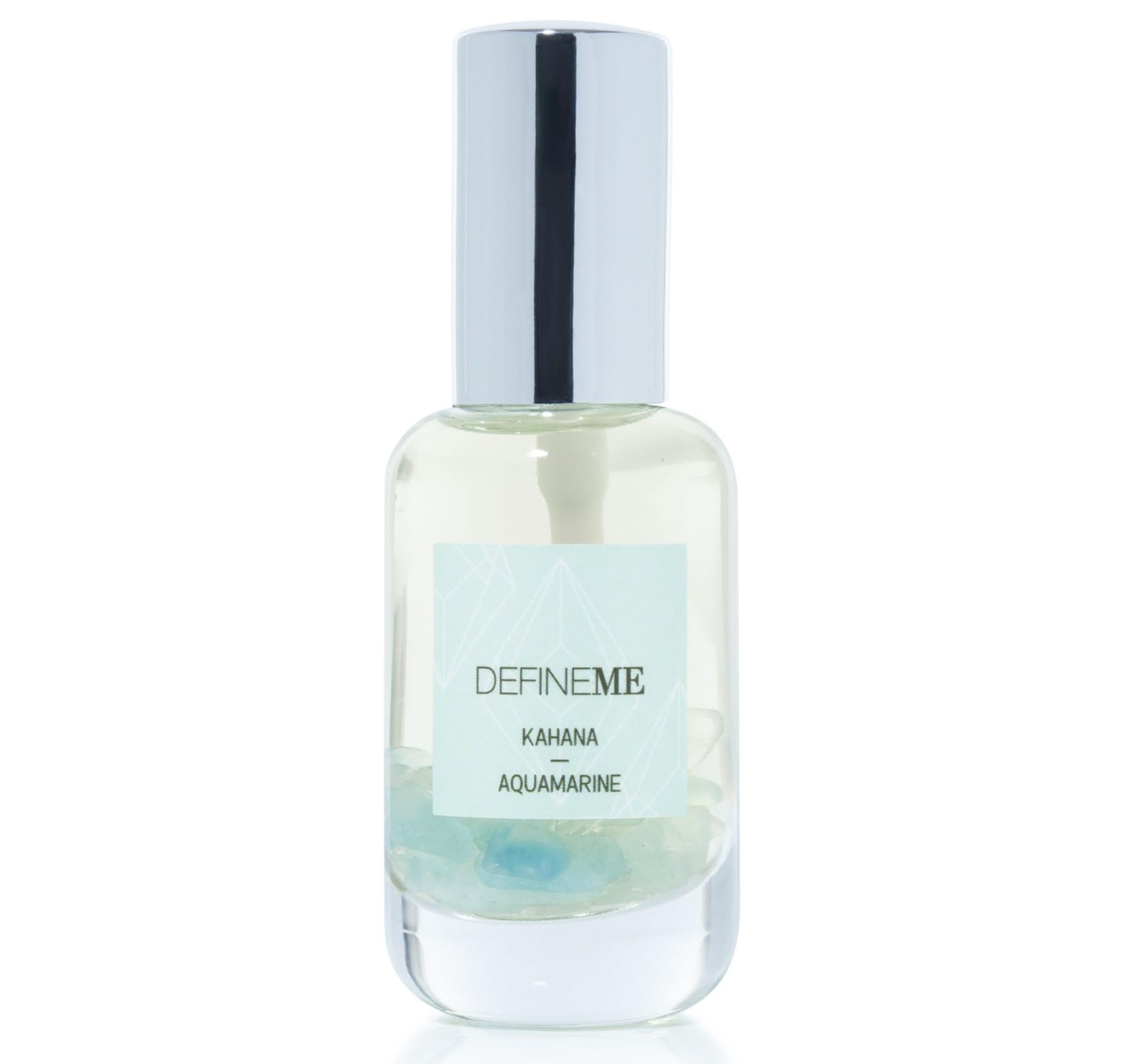 FEEL-GOOD FRAGRANCE: DefineMe is rooted in the belief that fragrance can be a daily ritual for empowerment and inner peace. Our collection of fragrances is built around this ethos, each designed with intentional, uplifting meanings to enhance emotional wellness. NATURAL, VEGAN, CRUELTY-FREE: We're proud to lead with better-for-you practices, using only non-toxic, cruelty-free, and sustainable ingredients. Every bottle we create is crafted to make people feel good, not just about how they smell, but about the brand they're supporting. Made in the USA. CRYSTAL INFUSED: Aquamarine crystals capture the beauty and stillness of water. They hold the key to inner harmony, heightened intuition, and timeless happiness. SCENT NOTES: Hibiscus, delicate pink pepper, coconut water, white orchid, santal, and soft blonde woods. KAHANA - AQUAMARINE: Kahana is like an escape in a bottle, an enchanting fragrance that whispers relaxation and transports you to serene shores.