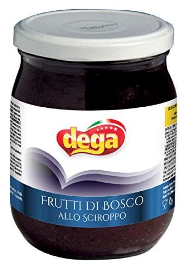Dega berries Berries picked at the right level of ripeness, washed and selected, packaged in a glass jar with the addition of their puree and cane sugar and subjected to a suitable heat stabilization treatment. Pack of 6 glass jars of 580 ml eachDEGA FRUTTI DI BOSCO 6 X 580 ML Frutti di bosco Dega Frutti di bosco raccolti al giusto grado di maturazione, lavati e selezionati, confezionati in vasetto di vetro con aggiunta della loro purea e di zucchero di canna e sottoposti ad idoneo trattamento termico di stabilizzazione. Confezione da 6 barattoli in vetro da 580 ml cadauno
