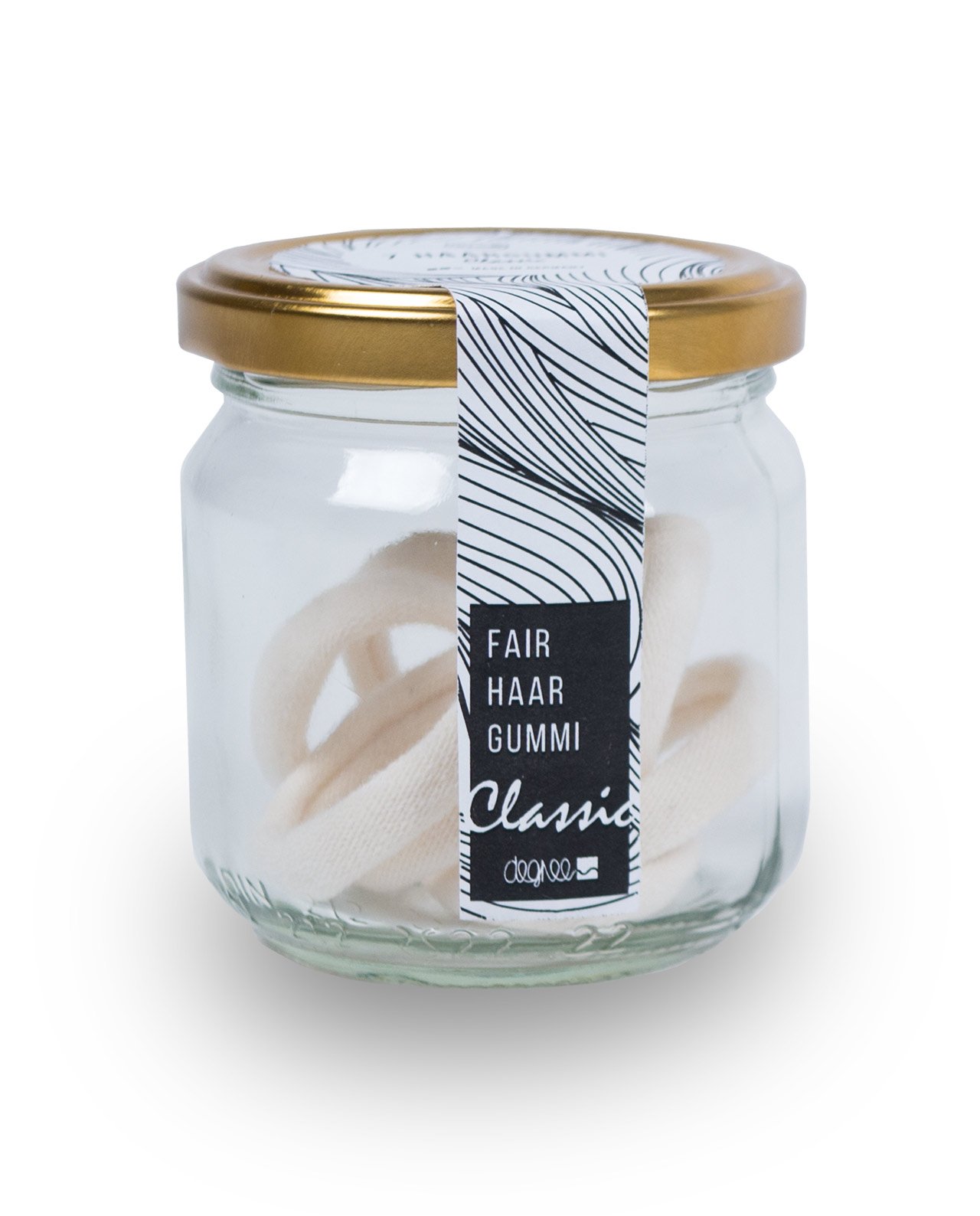 Degree Nachhaltige Haargummis FAIRHAIR 7er-Glas beige aus Bio-Baumwolle Made in EU