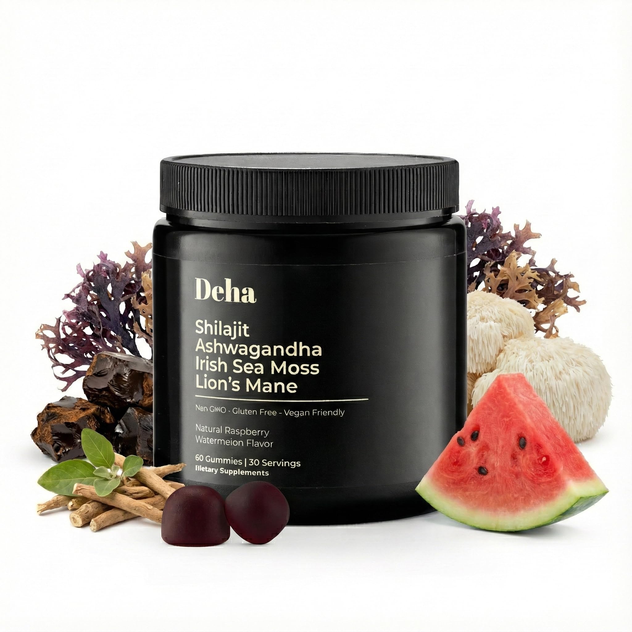 Deha Shilajit Gummies for Men & Women with Ashwagandha, Irish Sea Moss, Lion s Mane, Beet Root & Black Seed Extract Raspberry Watermelon Flavor Vegan, Non-GMO, Gluten-Free 60 Gummies