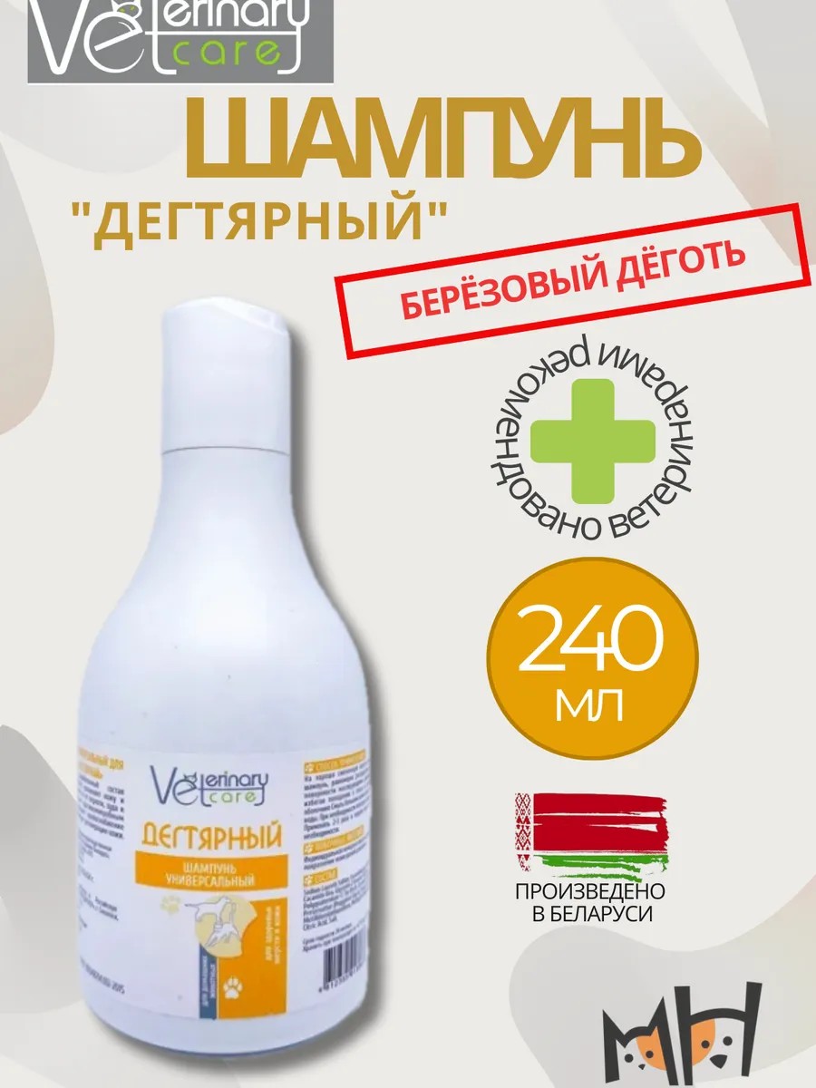 Шампунь Дегтярный (дерматологический) для собак и кошек благодаря специально разработанному составу шампуня смягчает, увлажняет кожу и шерсть. Антибактериальный шампунь для собак и кошек избавляет от перхоти, зуда и сухости. Противомикробный, противогрибковый, противопаразитарный и противовоспалительный эффект шампуня для собак и кошек Дегтярный достигается с помощью тщательно отобранных активных веществ. Лечебный шампунь для собак и кошек Дегтярный улучшает кровоснабжение тканей и стимулирует регенерацию кожи. Способ применения антибактериального дерматологического шампуня: нанести небольшое количество шампуня на влажную шерсть, помассировать круговыми движениями, избегая попадания в глаза и слизистые оболочки, смыть большим количеством теплой воды. Применять антисептический шампунь не более 2-3 раза в неделю или по мере необходимости.