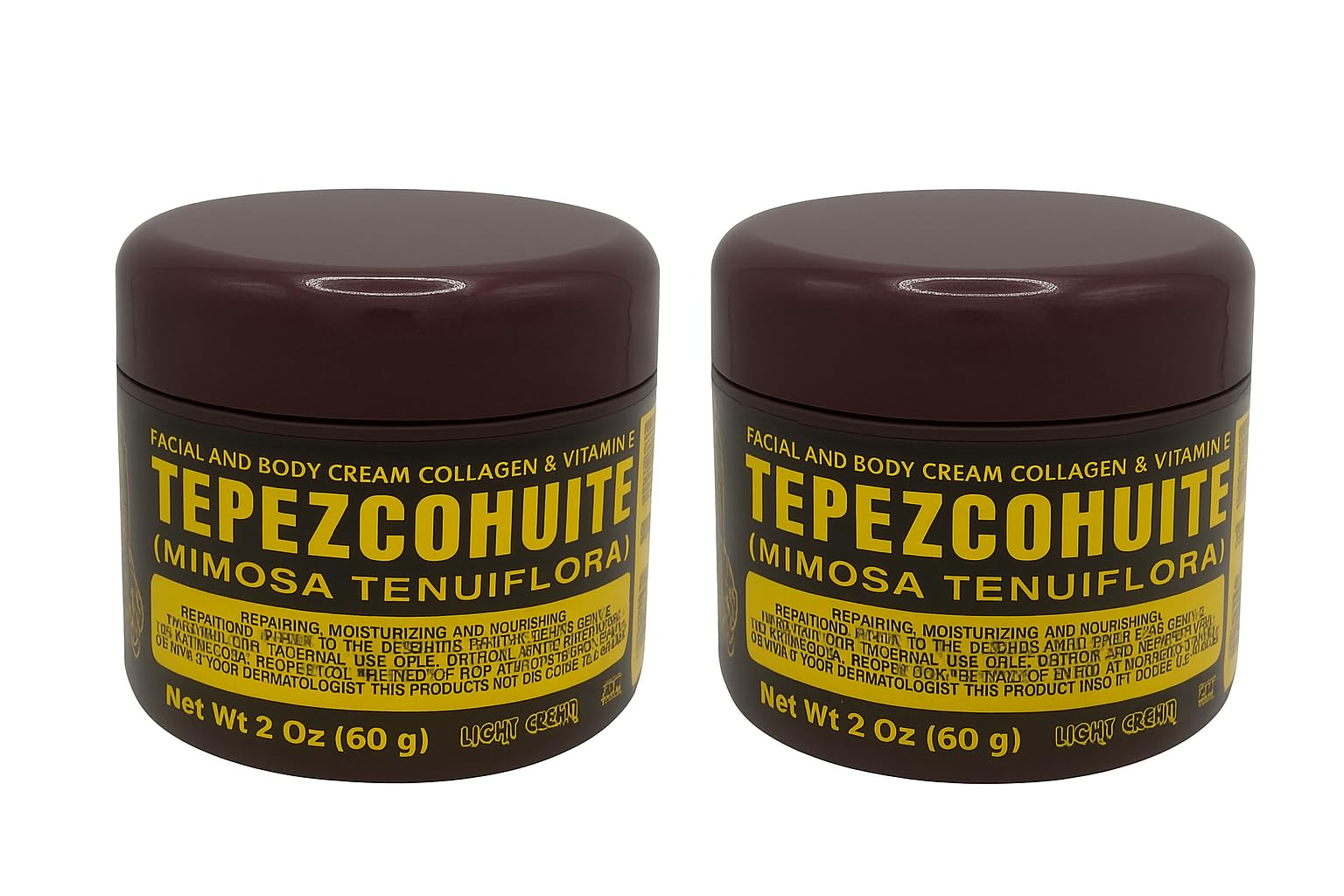 VALUE PACK: Includes two 2-oz jars of cream, providing an extended supply of this nourishing skincare solution. CONVENIENT SIZE: Each jar contains 2 ounces (60g) of cream, perfect for regular daily use. MOISTURIZING FORMULA: Light cream texture that helps repair, moisturize, and nourish the skin for a healthier appearance. NATURAL INGREDIENTS: Features Mimosa Tenuiflora (Tepezcohuite) extract known for its skin-nourishing properties. DUAL PURPOSE: Versatile facial and body cream formulated with collagen and vitamin E for comprehensive skincare benefits.
