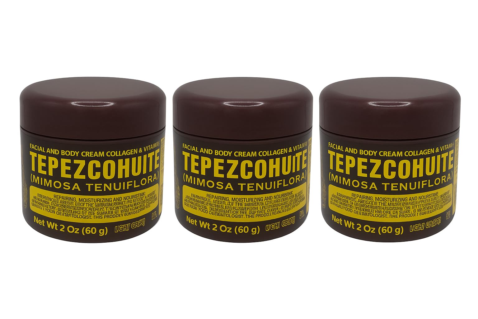 EASY TO USE: Simply apply a small amount to face and body as part of your evening skincare routine. NIGHT APPLICATION: Specially formulated for nighttime use when skin naturally undergoes repair and regeneration. GENEROUS SUPPLY: Includes three 2-ounce (60g) jars for extended use and convenience. NOURISHING FORMULA: Light cream texture that moisturizes and nourishes skin, suitable for daily use on face and body. MULTI-PURPOSE CREAM: Facial and body cream formulated with Tepezcohuite (Mimosa Tenuiflora), collagen, and vitamin E for comprehensive skincare.