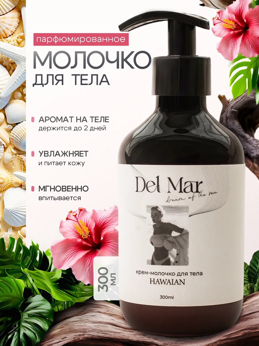 Откройте для себя идеальный уход за телом с крем – молочком для тела Del Mar с ароматом Гавайи. Это уникальное средство создано специально для того, чтобы обеспечить вашей коже необходимое питание и увлажнение, а также помочь в борьбе с сухостью и шелушением. Подходит для всех типов кожи и может использоваться для ухода за различными участками тела включая шею, декольте, руки. Он особенно рекомендуется после родов или в период беременности, когда кожа нуждается в особой заботе. Так же можно использовать на отдельные части, такие как пятки, колени. Благодаря своей легкой текстуре, крем быстро впитывается, не оставляя жирного блеска. В состав крема входят натуральные ингредиенты, которые питают и увлажняют кожу, делая ее более мягкой и эластичной. Молочко помогает восстановить естественный баланс влаги в коже, предотвращая ее обезвоживание. Защищают кожу от вредного воздействия ультрафиолетовых лучей. В нашем магазине вы можете собрать для себя или в подарок идеальный набор косметических средств.