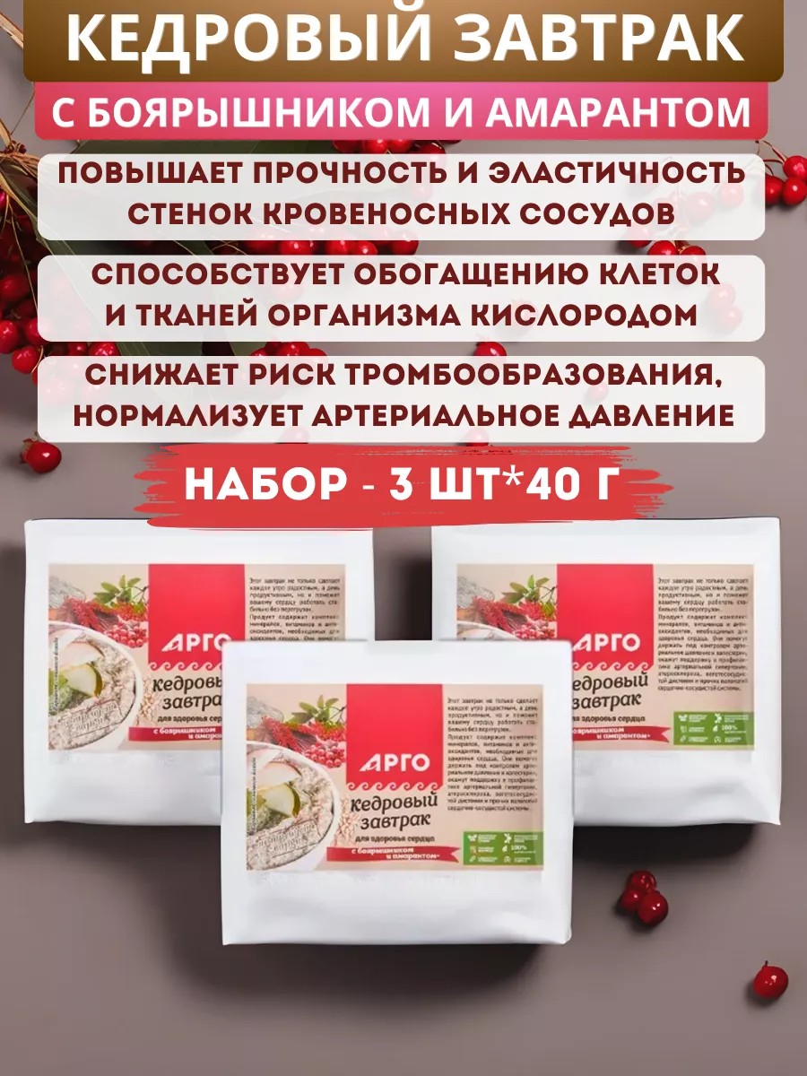 Завтрак кедровый для сердца с боярышником и амарантом, 40 г. - набор 3 шт.