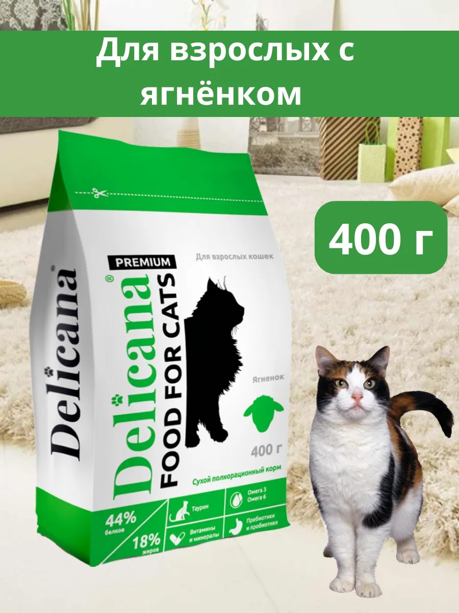 Delicana Сухой корм для взрослых кошек 400 гр с ягненком