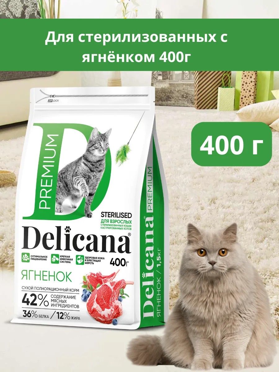 Delicana Сухой корм для кошек 400 гр с ягненком