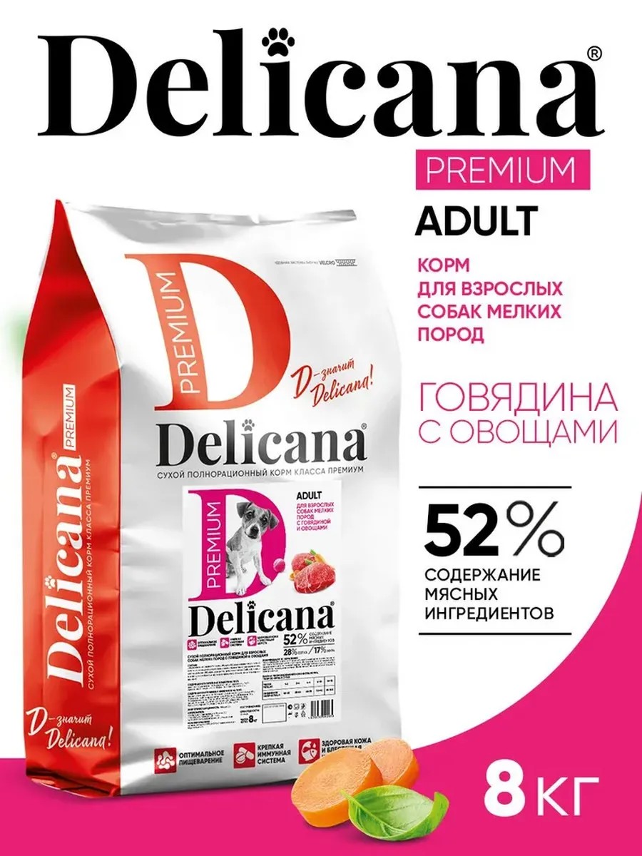 | Полное наименование товара | Сухой корм для собак деликана мелких пород говядина с овощами, 8кг |