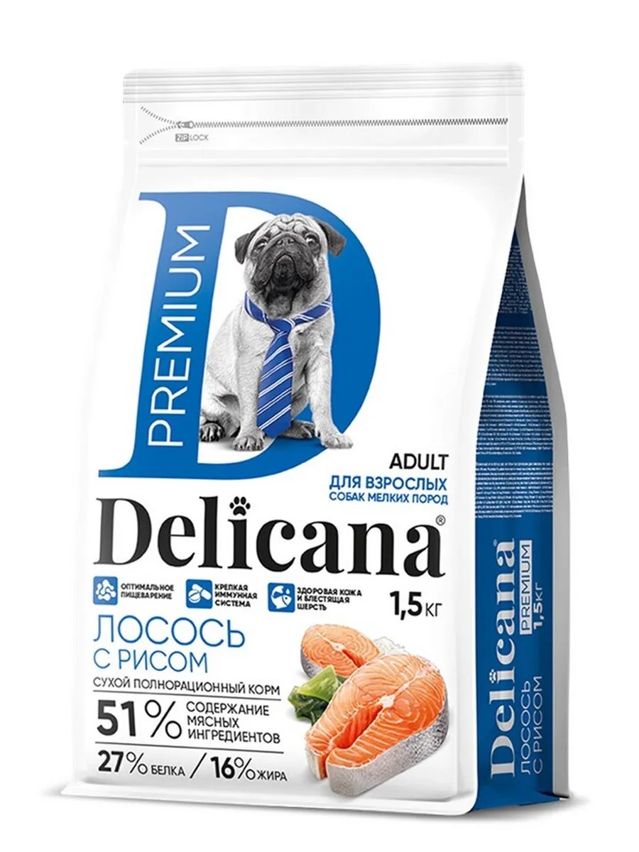 Delicana Сухой корм для собак мелких пород 1,5 кг Лосось с рисом