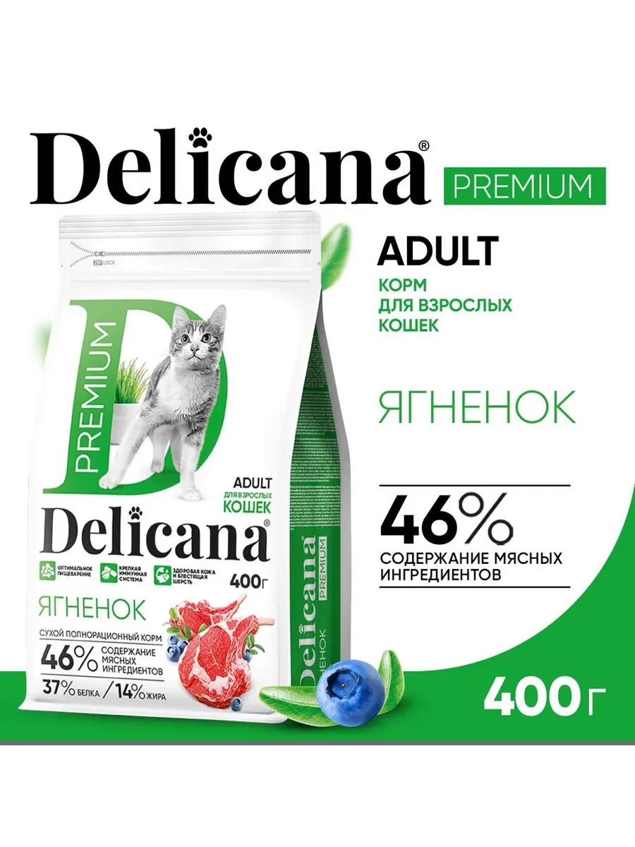 Полнорационный сбалансированный сухой корм Delicana с ягненком – это сбалансированное питание, полностью отвечающее потребностям кошек . Пробиотики и пребиотики стимулируют естественную микрофлору кишечника, поддерживая оптимальное пищеварение, улучшают состояние кожного покрова и шерсти, экстракт Юкки Шидигера нормализует работу печени и укрепляет иммунитет. Семена льна богаты омега 3 и омега 6 жирными кислотами, которые улучшают состояния кожных покровов и шерсти, бурые водоросли помогают укрепить иммунную систему и обеспечивают надёжную защиту от всевозможных болезнетворных бактерий и микроорганизмов. Рекомендован для ежедневного кормления.