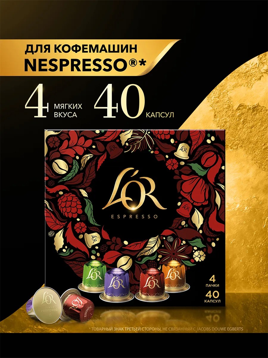 Набор кофе в капсулах «L’OR Delicate collection» для кофемашины Nespresso создан специально для ценителей мягкого вкуса и нежного аромата кофе средней обжарки. Набор включает 4 изысканных бленда из 100%-ной арабики с интенсивностью от 5 до 8 (по 10 капсул в каждой упаковке). Подарите себе полную гармонию вкуса и выберите свой любимый вариант.