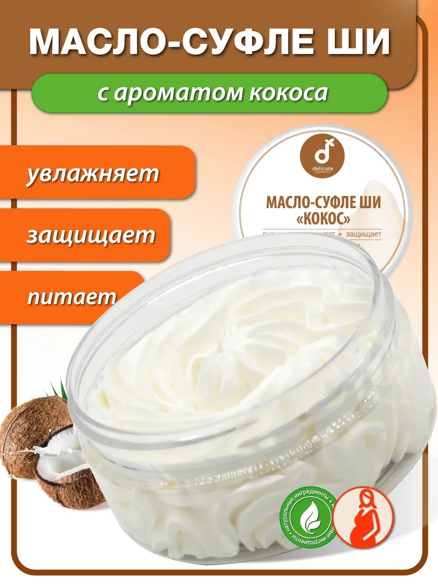 Introducing our unique Shea Butter Soufflé. Immerse yourself in a world of stunning, light coconut aroma and soft, delicate texture by adding this shea butter, whipped to a fluffy soufflé with coconut oil, grapeseed oil, and vitamin E to your makeup bag. Natural restoration and hydration from hair to toes and heels. This treatment will leave your skin glowing with youth and health! This nourishing soufflé butter with the aroma of heavenly, creamy coconut seduces and immerses you in a blissful extravaganza. It's a must-have for your beauty and flawless image. Use it daily as a day and night treatment, adding elements of massage with Gua Sha, and you'll forget about dry skin. It will help restore tone and reduce bags under the eyes. This hypoallergenic product is made from high-quality natural ingredients. It won't clog pores, allowing your skin to breathe. Professional anti-aging skincare products for the face and body, hands and feet, and lips. Indispensable for expectant mothers as an effective treatment for stretch marks and promotes skin regeneration. For babies, it helps with dermatitis and diaper rash. This moisturizing cream smooths fine wrinkles and is suitable for all skin types, especially dry skin. It relieves cracked heels, easily combats peeling hands, softens cuticles, and improves nail health. In summer, it perfectly restores skin after sunburn, and in winter, it protects from frost. Use as a hair mask. Our shea butter is economical! Thanks to its elegant, stylish packaging, it makes an ideal gift for birthdays, March 8th, New Year's, or discharge from hospital. For men, shea butter will help relieve irritation after shaving. For beards and mustaches, it will restore a healthy glow. Directions: Apply a small amount to damp skin after a bath or shower, massaging gently. Absorbs quickly, leaving no greasy film or shine. We offer a wide selection of airy butters in our store: vanilla, orange, mango, and sea buckthorn. We invite you to shop.