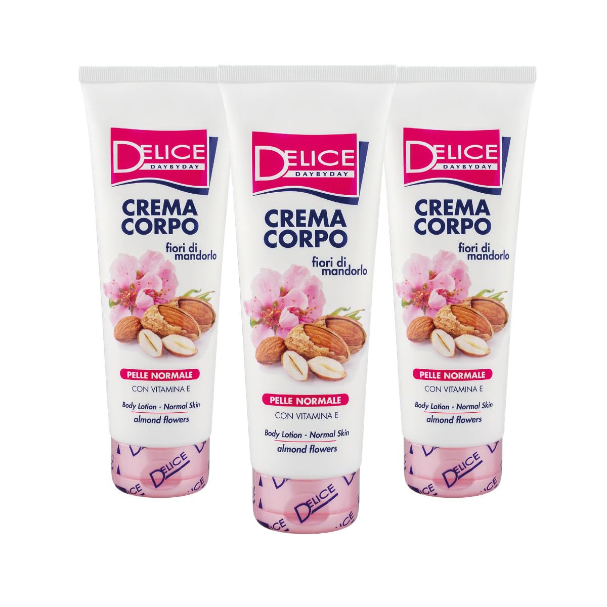 The body and skin need air, water, and nourishment. Delice Body Cream with sweet almond oil, glycerin, and vitamin E, with an almond blossom fragrance, helps the skin maintain its physiological balance and protects itself from dehydration, leaving it soft, smooth, and velvety. Dermatologically tested. Use: Apply daily after bathing or sun exposure. Absorbs easily and leaves no residue. SAFETY WARNING For external use only.Application: Recommended application after bathing or sun exposure for visibly softer, silkier skin. Absorbs easily and leaves no residue. Dermatologically tested: The selected ingredients in this body cream are gentle on the skin. Normal skin: This fragrant moisturizing cream helps maintain the skin's physiological balance, protecting it from dryness and dehydration. Fragrance: A delicate almond blossom scent leaves the skin feeling fresh and comfortable, soft, smooth, and velvety. Nourishing cream: Enriched with sweet almond oil, glycerin, and vitamin E for deep hydration and skin nourishment.Delice Crème pour corps hydratante aux fleurs d'amande, pour peau normale, avec vitamine E et glycérine - 3 pièces x 250 mlDESCRIPTION DU PRODUIT DESCRIPTION DU PRODUIT Le corps et la peau ont besoin d'air, d'eau et de nourriture. Delice Crème Corps à l'huile d'amande douce, glycérine et vitamine E, au parfum de fleurs d'amandier, aide la peau à maintenir son équilibre physiologique et à se protéger de la déshydratation en la rendant douce, lisse et veloutée. Testé dermatologiquement. Utilisation : appliquer quotidiennement après le bain ou après l'exposition au soleil. S'absorbe facilement et ne laisse pas de résidus. AVERTISSEMENT DE SÉCURITÉ Usage extérieur uniquement.Application : l'application conseillée après le bain ou l'exposition au soleil pour une peau visiblement plus douce et soyeuse. S'absorbe facilement et ne laisse pas de résidus. Testé dermatologiquement : les composants sélectionnés de cette crème pour le corps sont doux pour la peau. Peau normale : la crème hydratante parfumée contribue à maintenir l'équilibre physiologique de la peau, en la protégeant de la sécheresse et de la déshydratation. Parfum : délicat parfum de fleurs d'amande qui laisse une sensation de fraîcheur et de bien-être sur la peau, la rendant douce, lisse et veloutée. Crème nourrissante : enrichie en huile d'amande douce, glycérine et vitamine E pour une hydratation profonde et une nutrition de la peau.