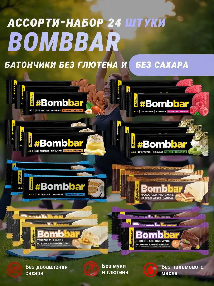 | Комплектация | Профессиональное спортивное питание спортпит Бомбар бом бар Bom bar ассорти 24шт. |