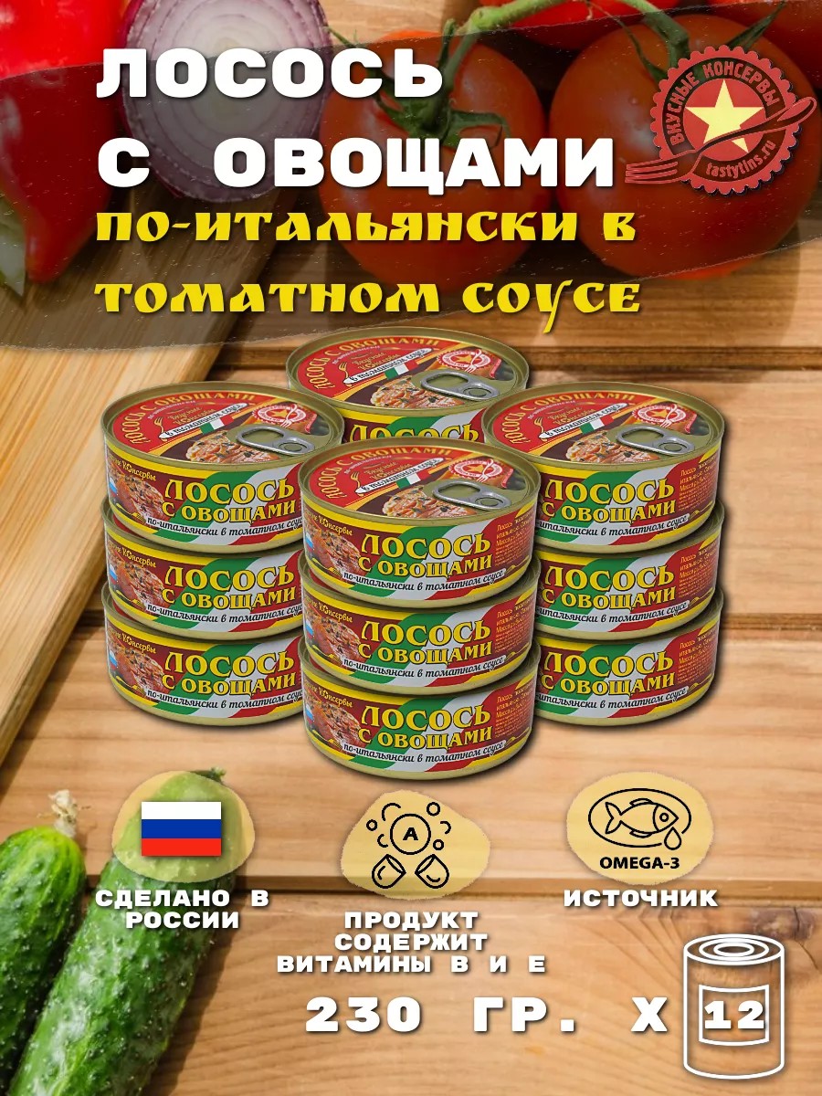 Вкусные консервы Лосось с Овощами по-Итальянски в Томатном Соусе, 12 шт.