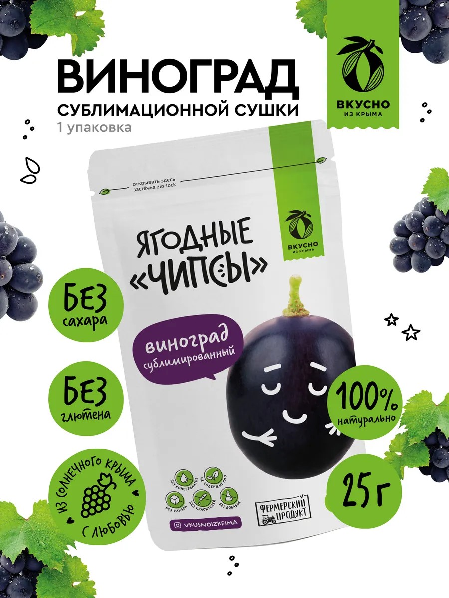Вкусно из Крыма Сублимированный виноград, фруктовые чипсы, 25 грамм