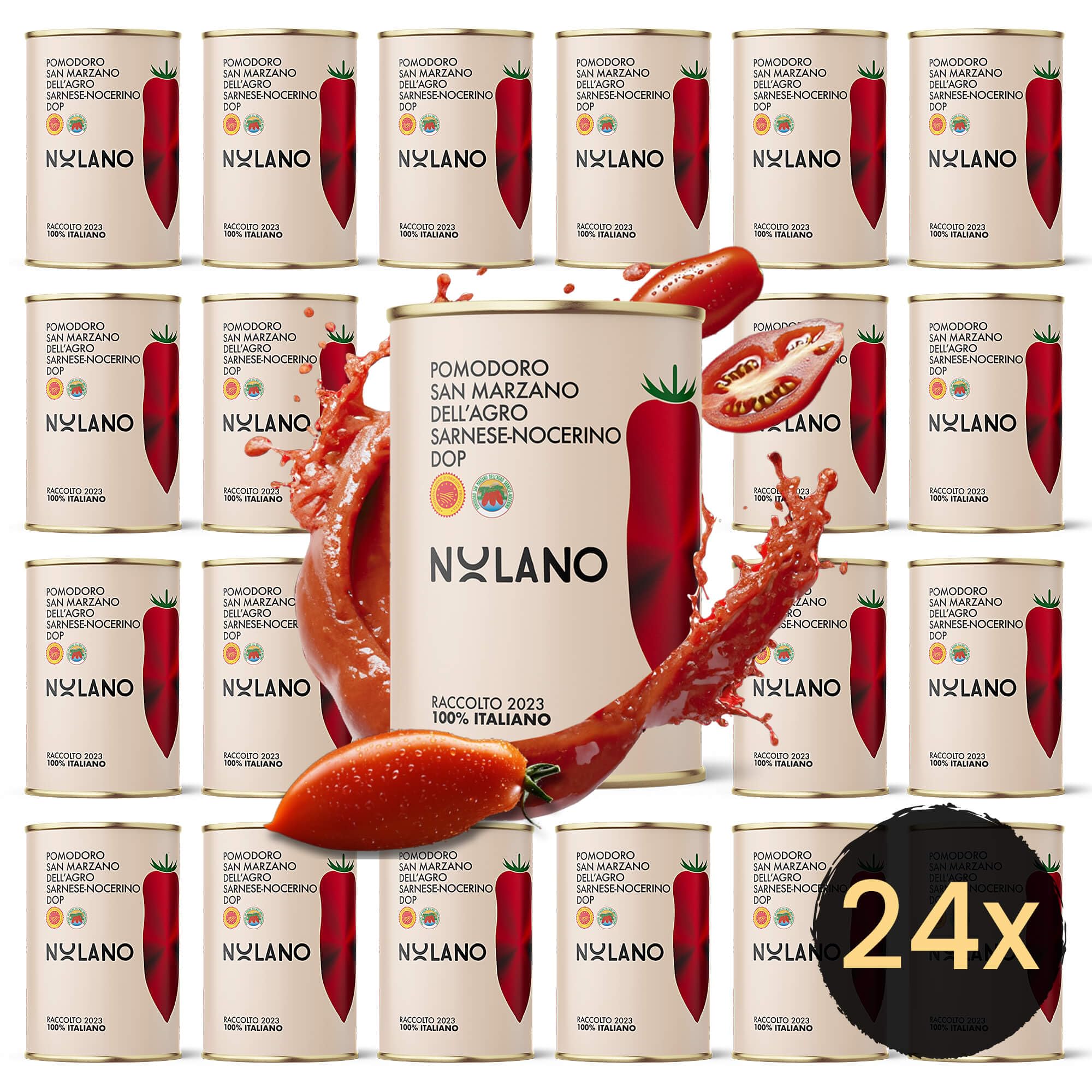 NOLANO San Marzano Tomatoes DOP - Authentic Flavor of Italy Discover the unparalleled quality and authentic taste of NOLANO San Marzano DOP tomatoes, directly from the fertile Agro Sarnese-Nocerino region of Italy. These tomatoes are an essential element of Italian cuisine and are known for their: Unique characteristics: their distinctive elongated shape, vibrant red color, and incomparable sweet and sour aroma make them the top choice for gourmets and professional chefs. Superior quality: hand-picked and processed within hours to preserve freshness and nutrients. Regional authenticity: guaranteed with Protected Designation of Origin (PDO). Numerous uses: These tomatoes are ideal for preparing: Classic pasta sauces such as the traditional "Sugo". Crispy Neapolitan pizzas Fresh soups and stews Gourmet dishes and creative recipe ideas Why Nolano? For over 60 years, NOLANO has stood for tradition, quality, and sustainability. With organic farming methods and complete control over the entire supply chain, NOLANO brings the true taste of Italy directly to your home. Product details: Contents: 400g Origin: Italy (Campania region) Ingredients: 100 San Marzano DOP tomatoes Packaging: Environmentally friendly and recyclable Get the authentic taste of Italy in your kitchen and discover the difference with NOLANO San Marzano DOP tomatoes. Perfect for lovers of Italian cuisine and anyone who appreciates quality and taste. INGREDIENTS Whole peeled San Marzano tomato