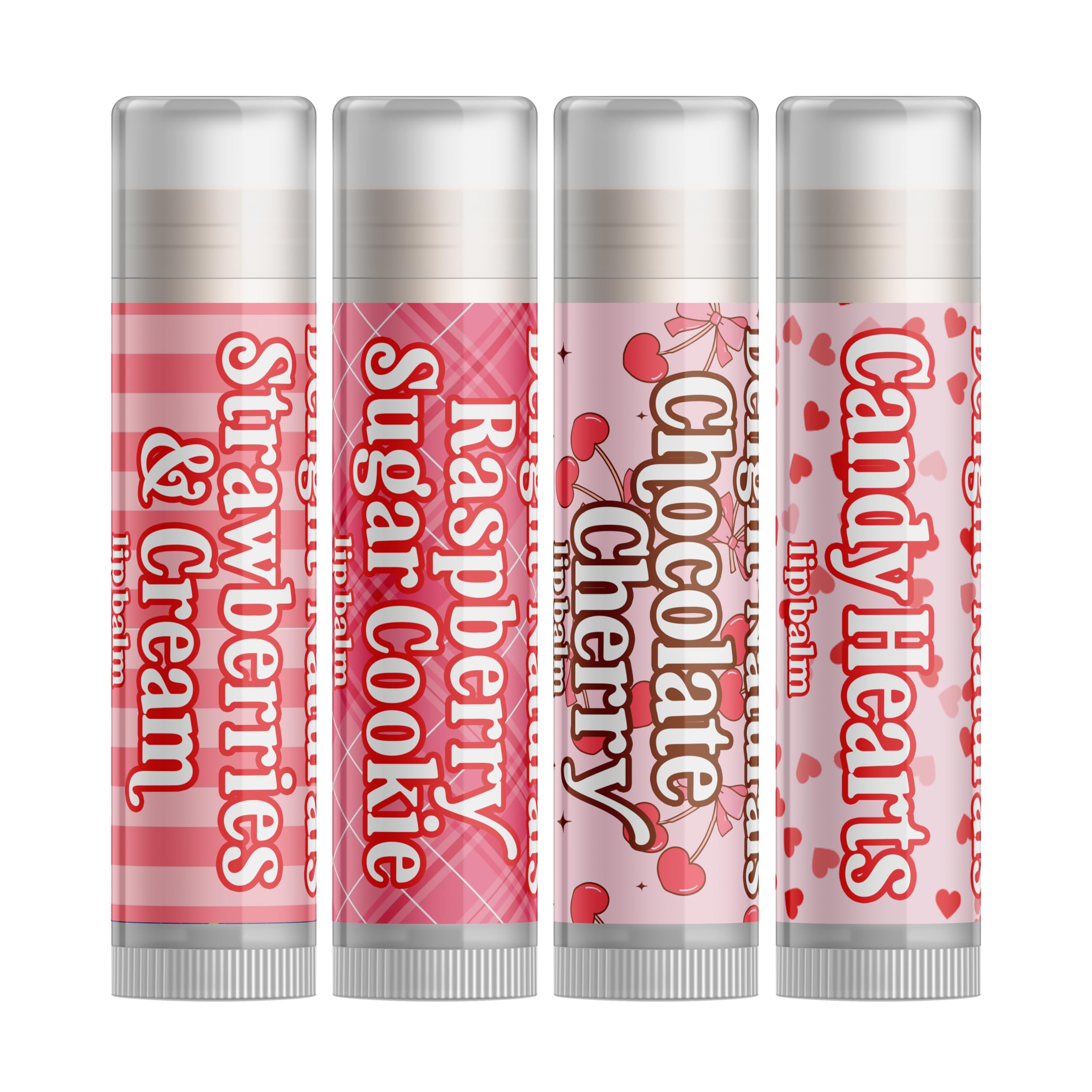 Delight Naturals Valentines Lip Balm Gift Set - Strawberries & Cream Raspberry Sugar Cookie Chocolate Cherry Candy Hearts