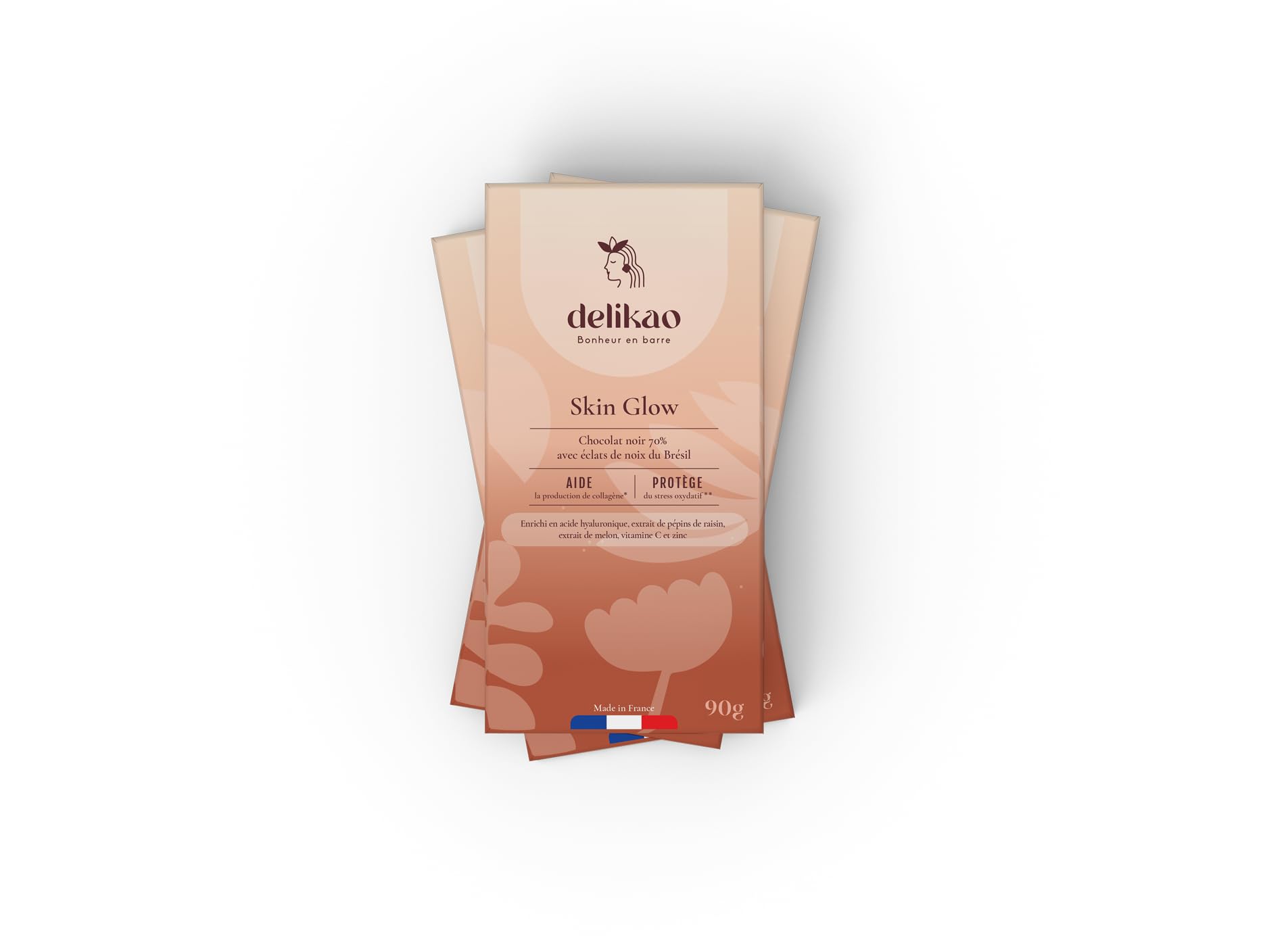 DELIKAO Chocolate bar SKIN GLOW Dark chocolate 70% cocoa hyaluronic acid Skinax Brazil nuts Cocoa Rediscover baby-soft skin Hydration (7 bars)