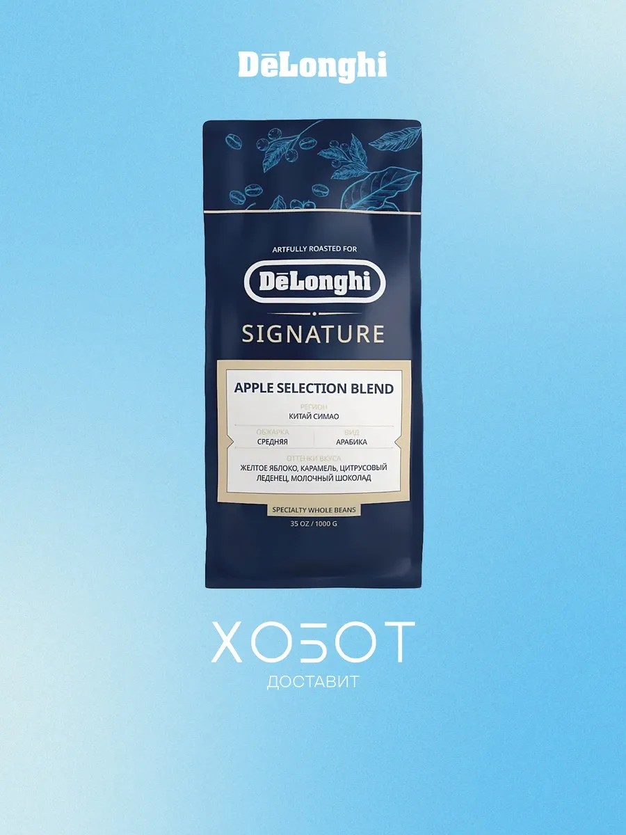 Delonghi Apple Selection Blend whole bean coffee is an excellent choice for connoisseurs of high-quality coffee. This product offers a unique combination of flavors and aromas that will delight even the most discerning connoisseurs. Each bean is carefully selected, guaranteeing high quality and a rich taste. Rich aroma and flavor. This blend, containing notes of apple, creates an unusual and refreshing experience that is perfect for morning coffee or a relaxing evening. Thanks to the high degree of roasting, each sip reveals a rich and deep aroma, making this coffee an excellent complement to various moments in your life. Suitable for various coffee drinks. Whole bean coffee is perfect for preparing a variety of coffee drinks, whether espresso, Americano, or cappuccino. It pairs perfectly with milk, highlighting its fruity notes and creating a harmonious combination with a creamy texture. Prepare yourself for the weekend with a cup of this magnificent coffee and enjoy its unique taste. Versatility. This coffee will not only delight your taste buds but also add a touch of originality to familiar coffee traditions. It can be used in coffee machines or coffee makers, which makes it versatile and convenient for everyone. Storage conditions. It is recommended to store coffee beans in a kitchen cabinet at a temperature of up to +25 °C. Avoid exposure to air, heat, and light. Or in the freezer at a temperature of at least -18 °C for no more than 2 months. In this case, close the packaging tightly and do not defrost to avoid condensation and, as a result, excess moisture. General characteristics. Coffee type: beans. Ingredients: 100% Arabica. Region of cultivation: Shimao, China. Packaging: vacuum. Weight: 1000 g. Features. Roast: medium. Taste: yellow apple, caramel, citrus candy, milk chocolate.