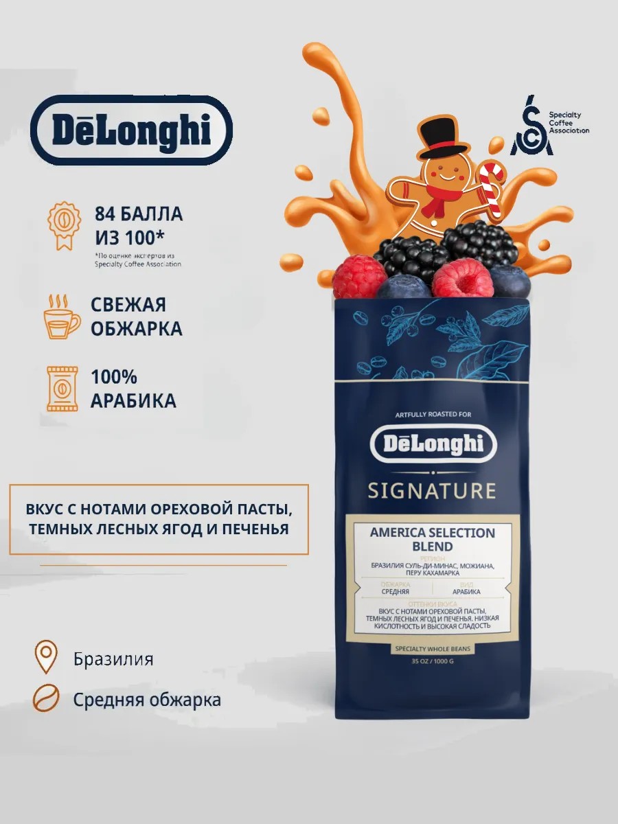 DeLonghi Кофе в зернах Signature coffee America Selection Blend, 1кг
