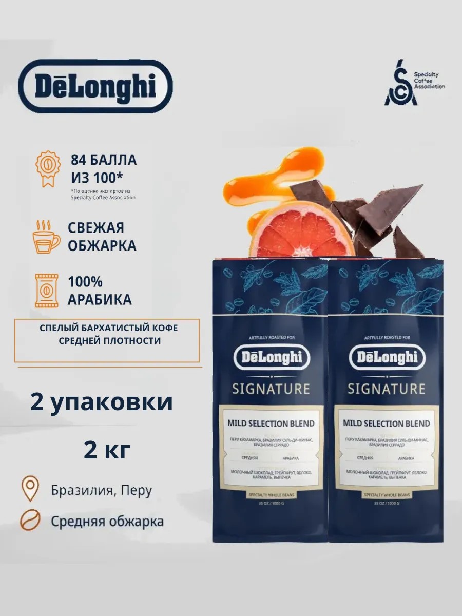 DeLonghi Кофе в зернах Signature coffee Mild Selection Blend, 2кг