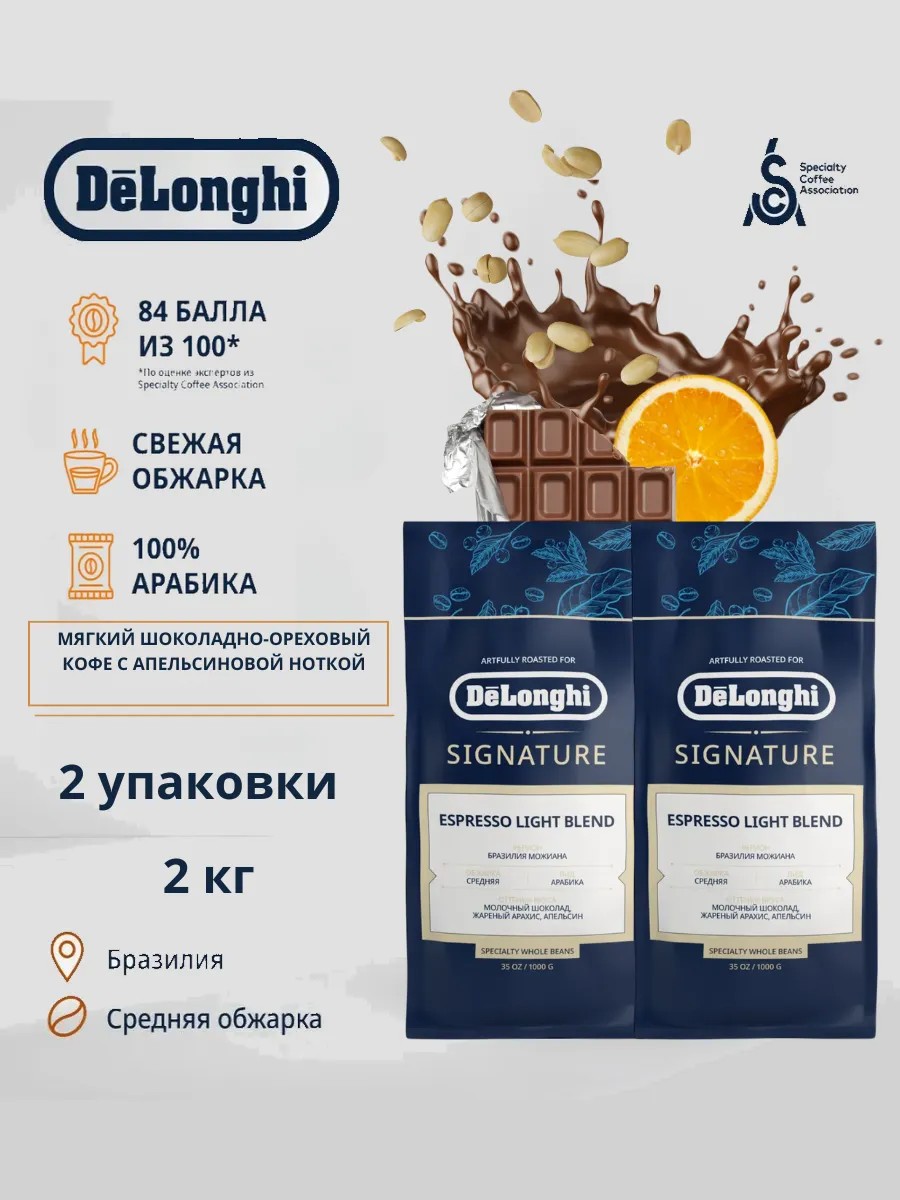 DeLonghi Кофе в зернах Signature Espresso Light, 2кг