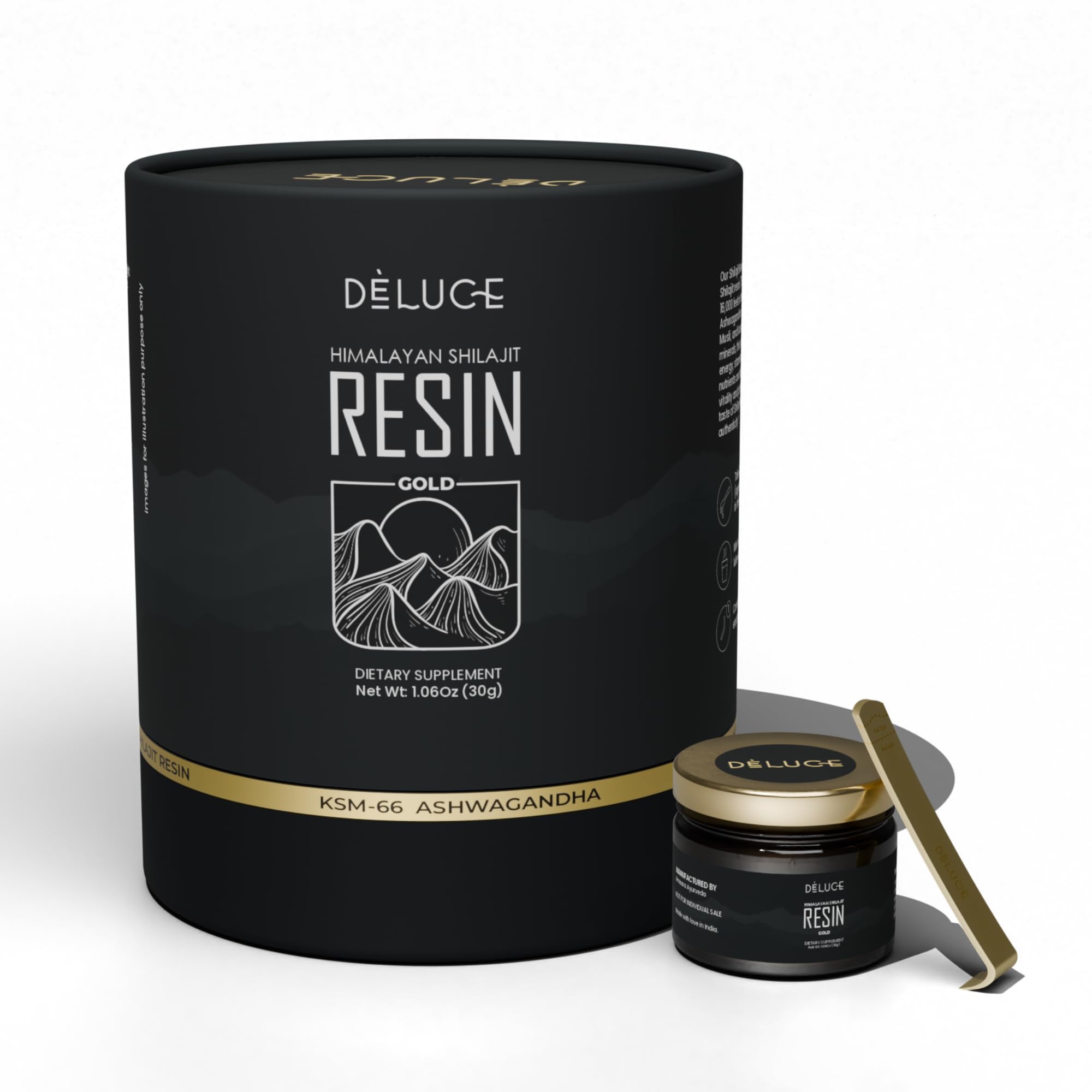 Deluce Himalayan Shilajit Resin Gold (30g) | 600mg Premium Shilajit with KSM-66 Ashwagandha Safed Musli Gokshura | Strength Stamina & Immunity Support | Lab-Tested Vegan Gold Grade