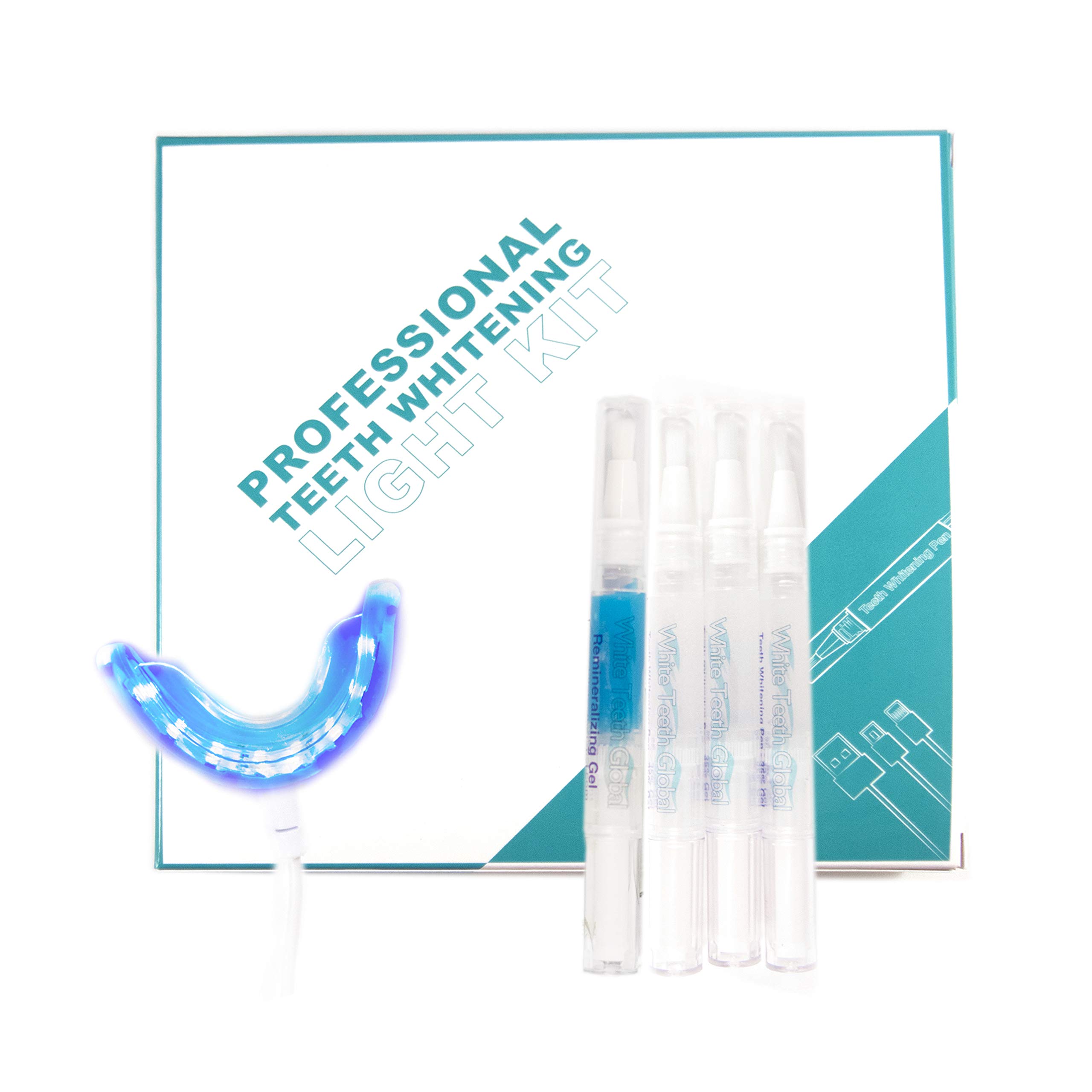 Our teeth whitening gel is kosher certified and Made in the USA with only the best ingredients. We recommend that first time users choose the 22 gel. Easy to Use teeth whitening kit with pens that paint the gel directly on the teeth. So no need for messy tooth whitening trays. See fast results with our dentist quality teeth whitening gel ( Made in the USA ). Satisfaction is Guaranteed!. Kit includes 4 pens. Deluxe Teeth Whitening 4 Pen Kit 3 Carbamide Peroxide Tooth whitening Gel, 1 Remineralization Gel and iLED LED Technology Made in USA.