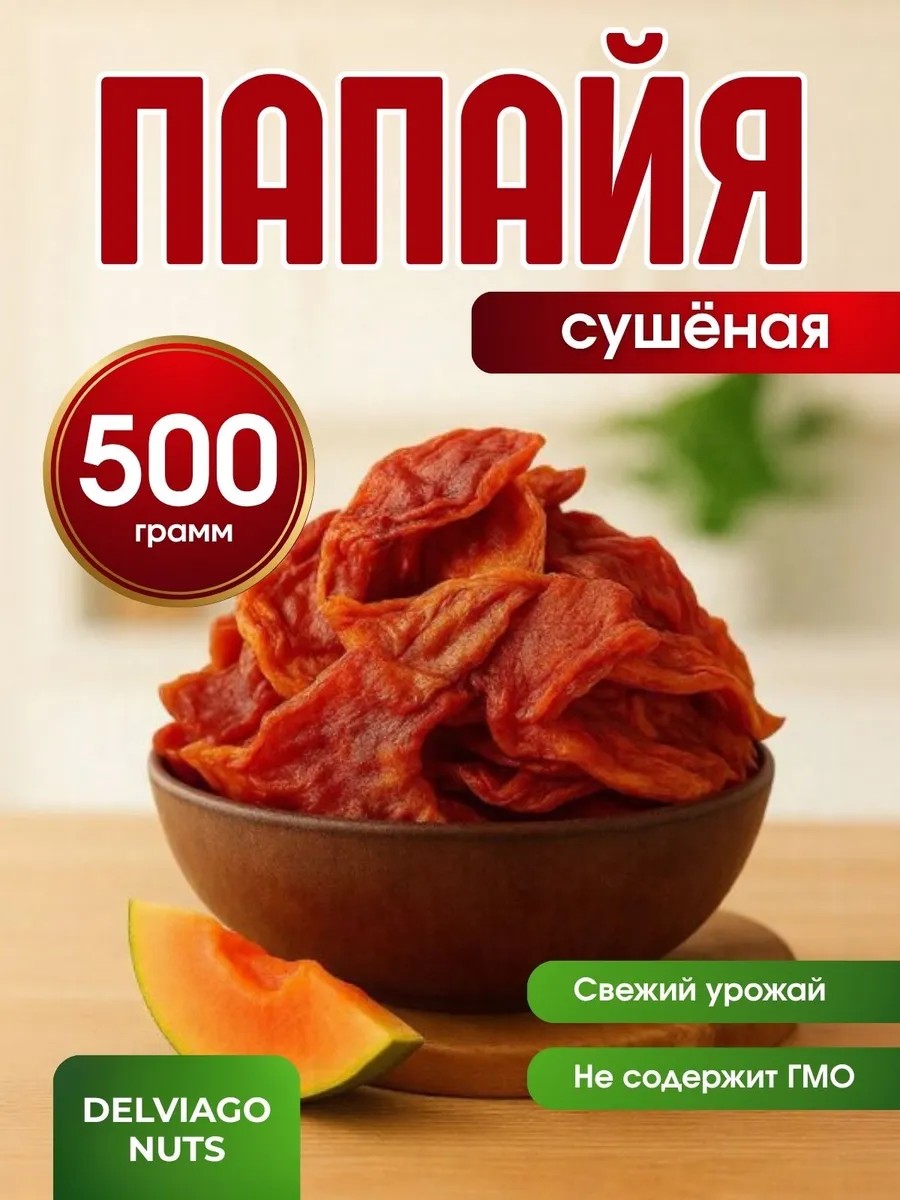 DELVIAGO NUTS Папайя сушеная натуральная 500 гр