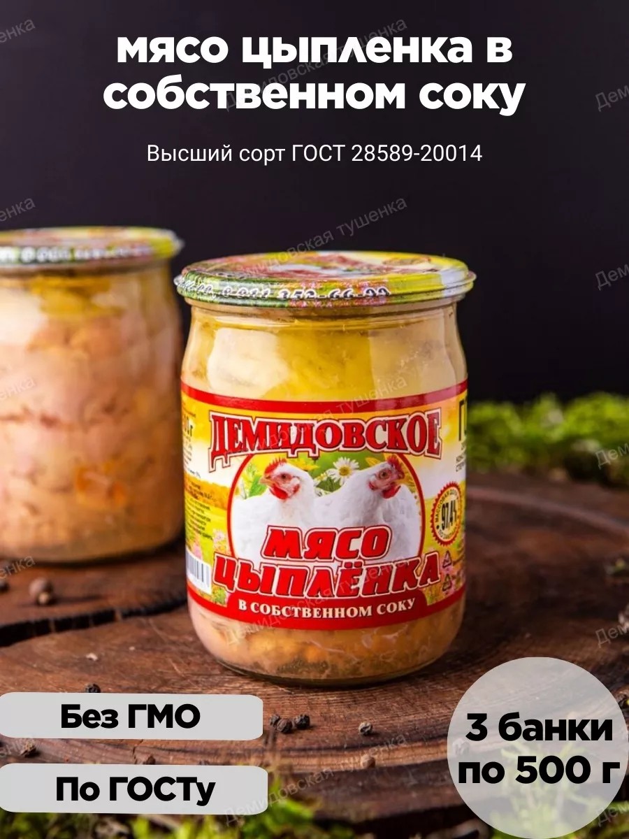 Демидовская тушенка Тушенка мясо цыпленка в собственном соку - 3 шт